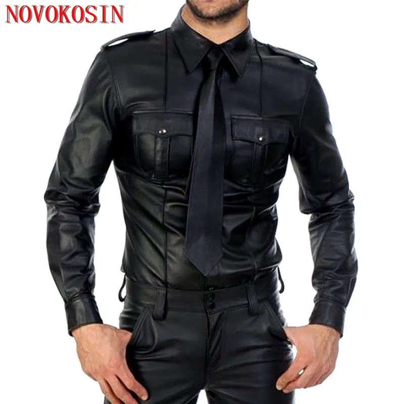 XX147 M-3XL 2019 модные черные мужские футболки из искусственной кожи для фитнеса футболки с длинными рукавами и двумя карманами
