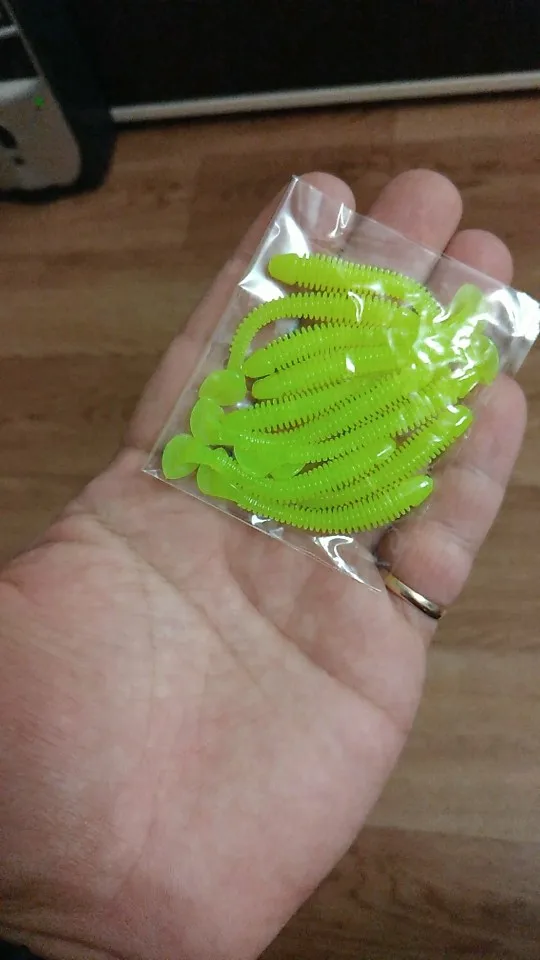 Силиконки пришли за 3 недели.Получение на почте в составе консолидированной посылки.Есть рыбный запах.Для джига вполне пойдёт.Товар и продавца рекомендую.