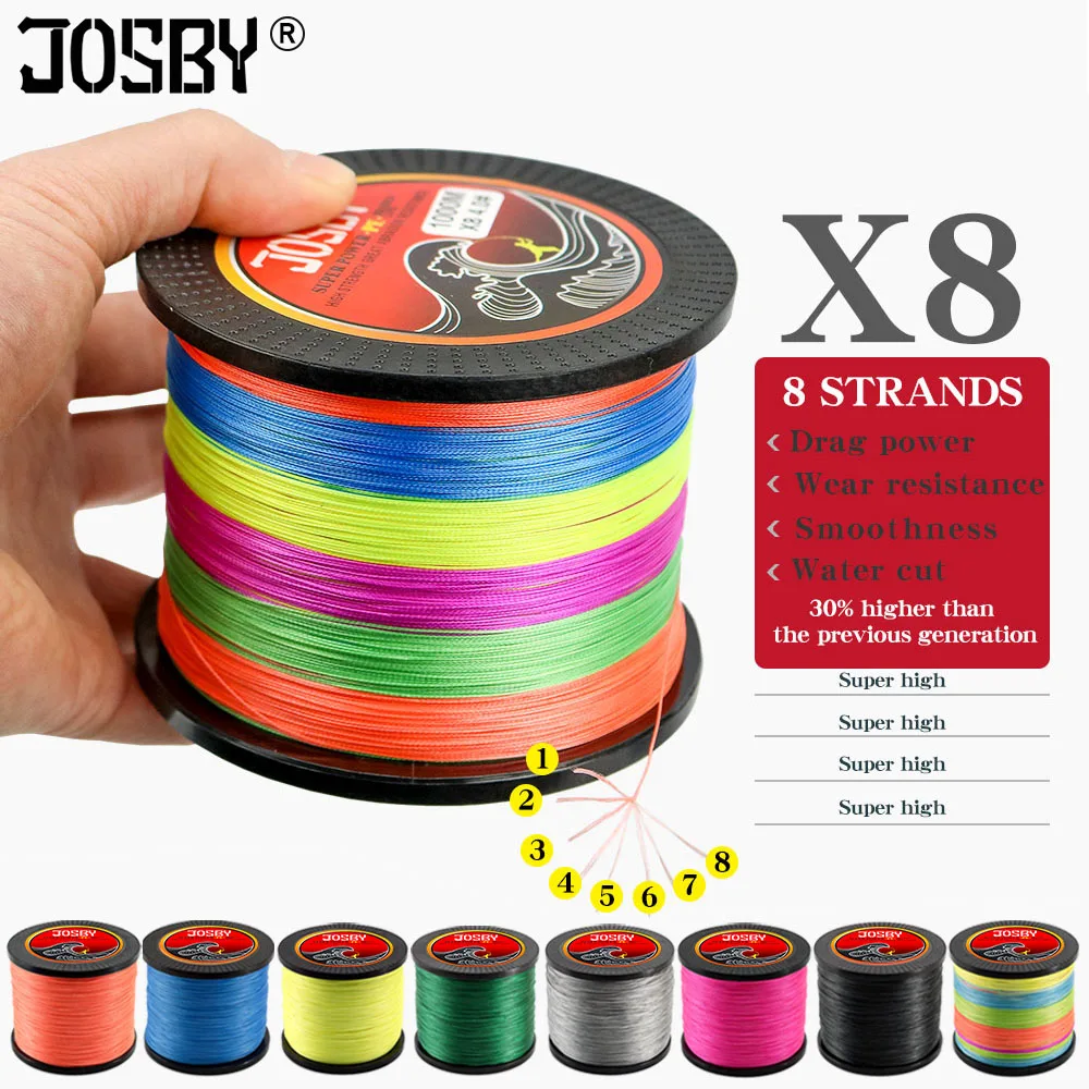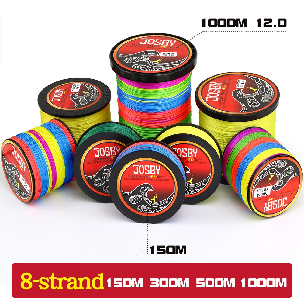 Плетеная рыболовная леска JOSBY для ловли карпа, мультифиламентный шнур для спиннинга, морские аксессуары, 8 нитей, 1000 м, 500 м, 300 м, 150 м