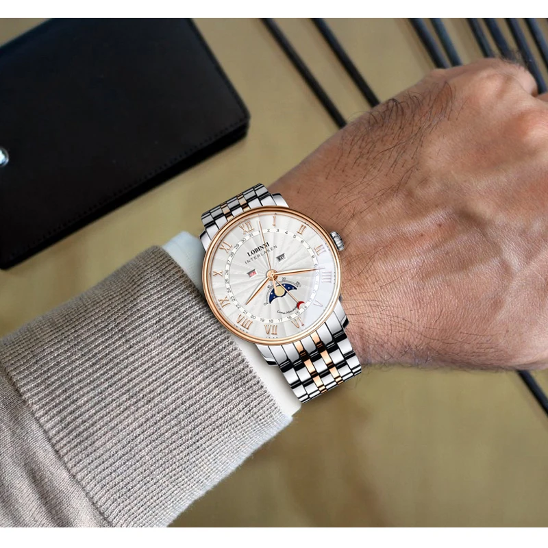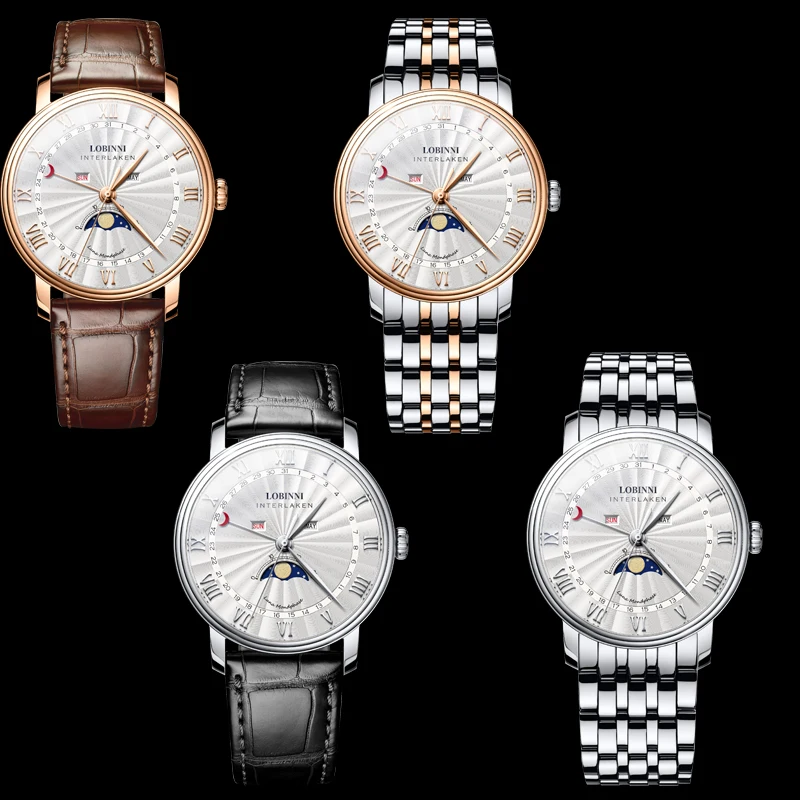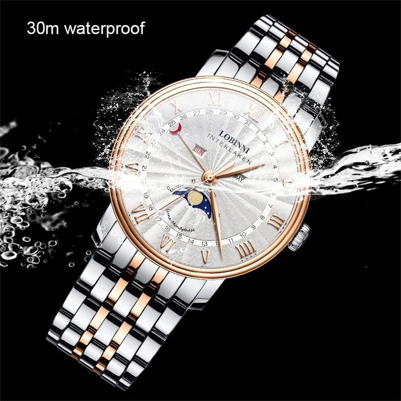 LOBINNI Роскошные брендовые кварцевые мужские s часы Moon Phase сапфир Водонепроницаемые часы из нержавеющей стали мужские деловые часы мужские horloges