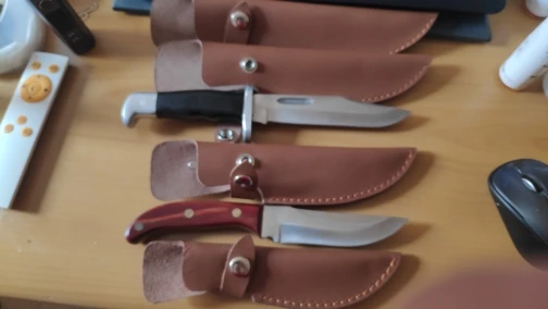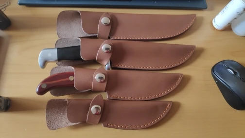 материал не натуральная кожа .Заклепки хлипкие .Для хорошего охотничего ножа не подходит