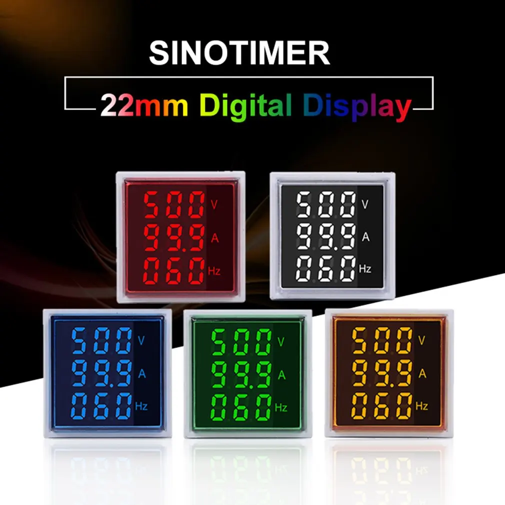 SINOTIMER 22 мм квадратный светодиодный индикатор, цифровой измеритель напряжения, частоты тока, сигнальные огни, комбинированный измеритель, тестер ST17VAH
