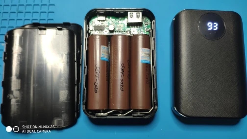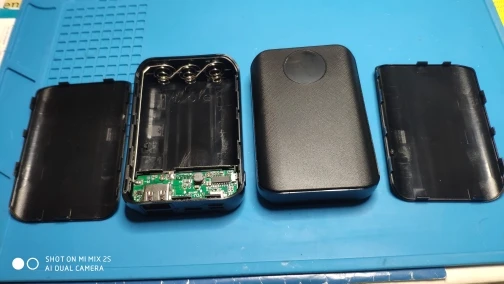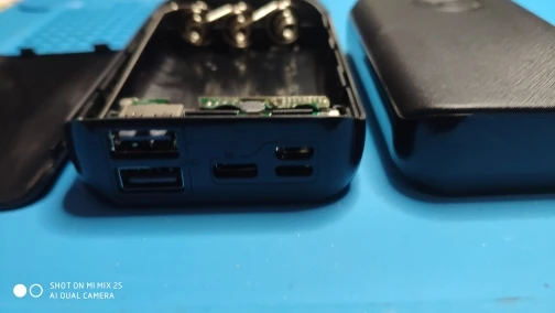 Корпус неплох для своей цены. Шло около 20 дней. Приятно удивил размер, думал будет чуть больше размером. Удобно что есть возможность зарезать 3 видами. Для меня как для владельца техники apple удобно носить модно всего один кабель. Но тут есть и минус при зарядки банан через Type-C заряд идёт быстрее потребления доходит до 1.8 ампера, при остальных подключениях не выше 1.3 ампера. При нагрузки свыше 1 ампера дико греется микросхема на фото. 2 ампера выдаёт только один порт. Контролёр разрежает банки до 3.2 вольт только при условии что нагрузка составляет не выше 1.1 ампера, если нагрузка выше показывает 0% уже при 3,5 вольт. По совету из отзыва по минусу параллельно пустил провод взял от старого бп из пк, сразу банки стали греться меньше. Пока тестирую закрывать не стал.