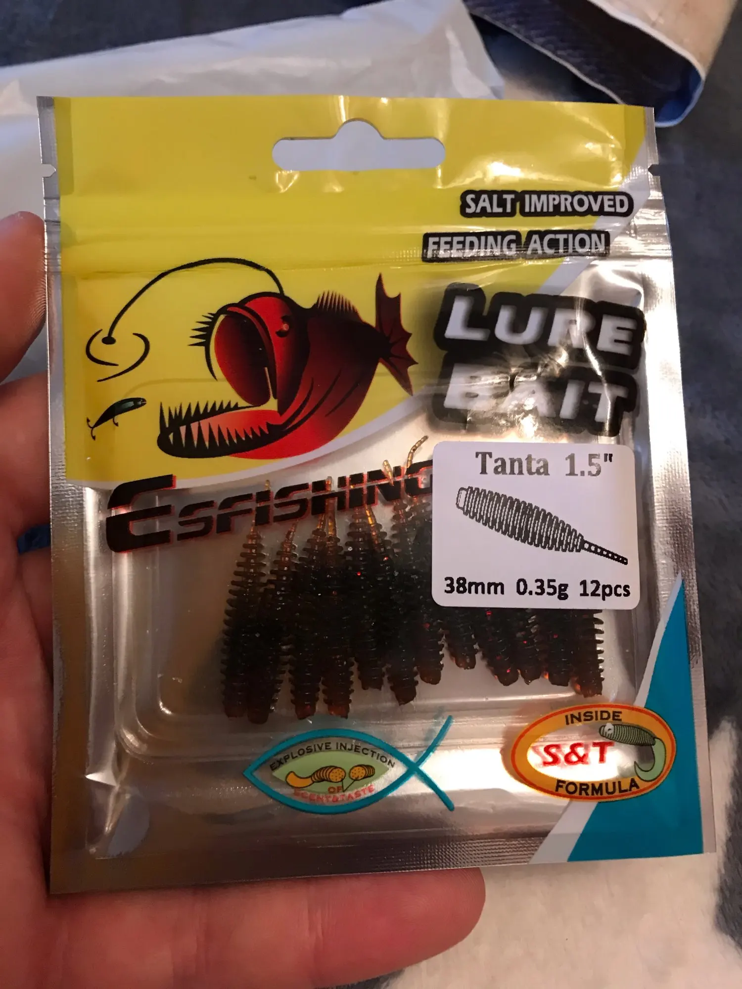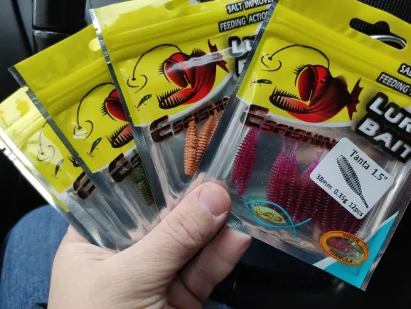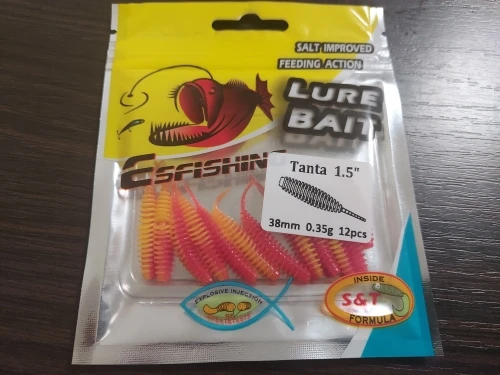 Tanta от ESFISHING 90 мм менее эластичная чем 38 мм. И запах менее интенсивный. Может быть мне достался просроченный товар в негерметичной упаковке. Пачка досталась по халяве за 1 цент и монеты. Доставка 2 недели. трек отслеживается. 38 мм буду брать, а вот 90 мм не знаю куда их применить. Пришлось ставить самый крупный офсетный крючок №5/0. Размер явно не окуневый. Вот если бы было 60-70 мм. А на щуку и судака есть у тех же ESFISHING и BEARKING поинтереснее приманки такого размера. Ладно пусть лежат. Может когда-нибудь выстрелит. Всем НХНЧ!