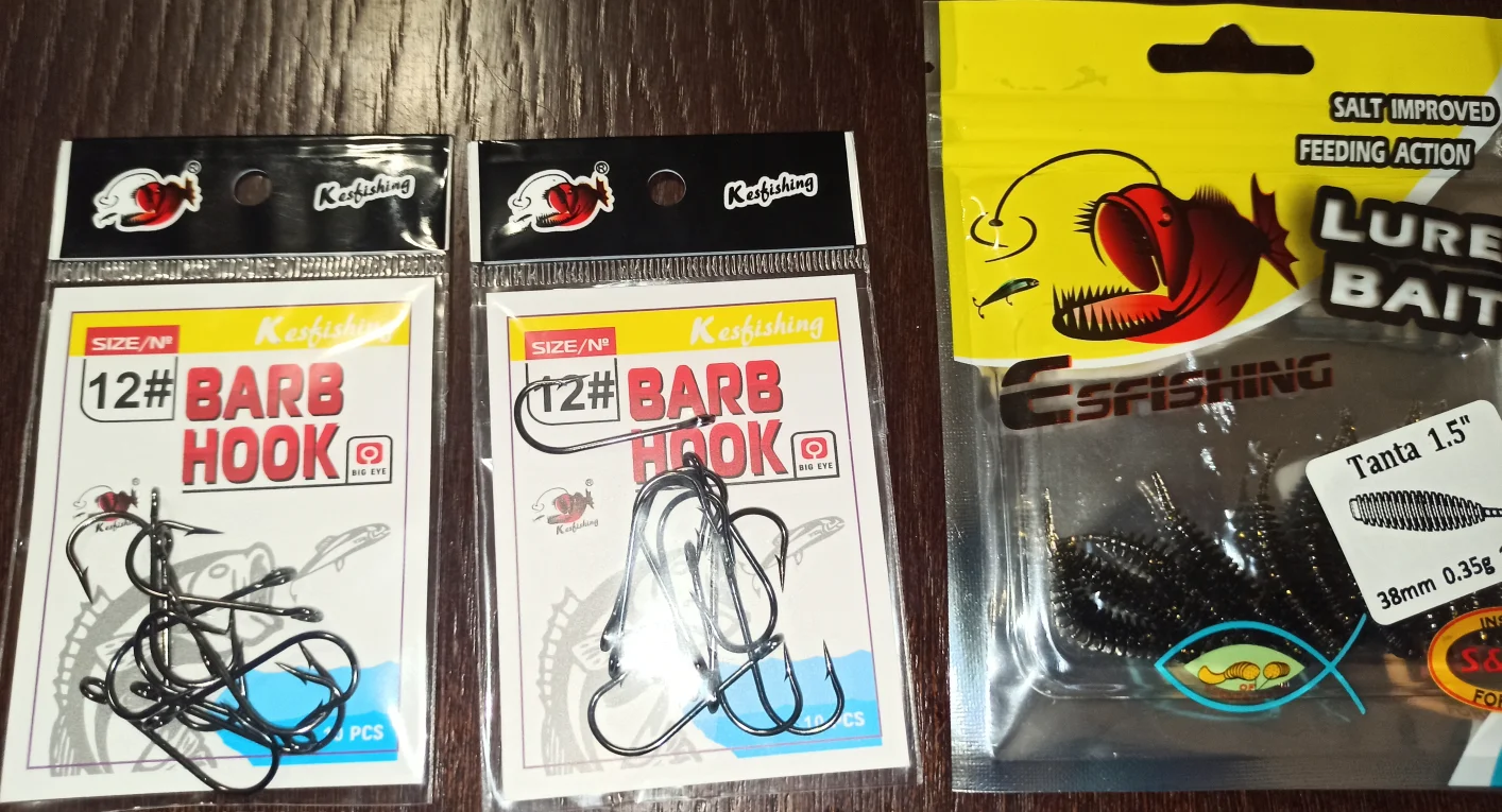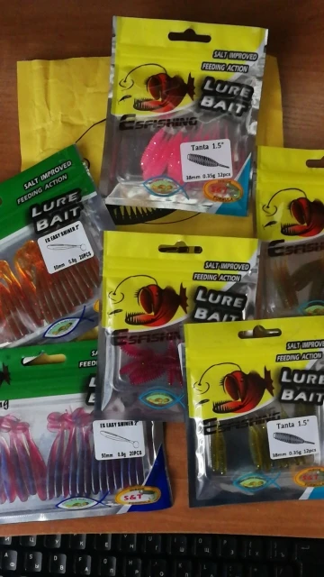 На пергий погляд непоганий силікон, має виражений запах креветки, тактильно м'який та гнучкий. Доставка до Ужгорода 3 неділі. Ьрек відсліжувався до України. По Україні доставка два дні новою поштою, кур'єр зателефонував та привіз до дому. Замовляв цілий набір, декілька пачок гачків відправили у подарунок.
