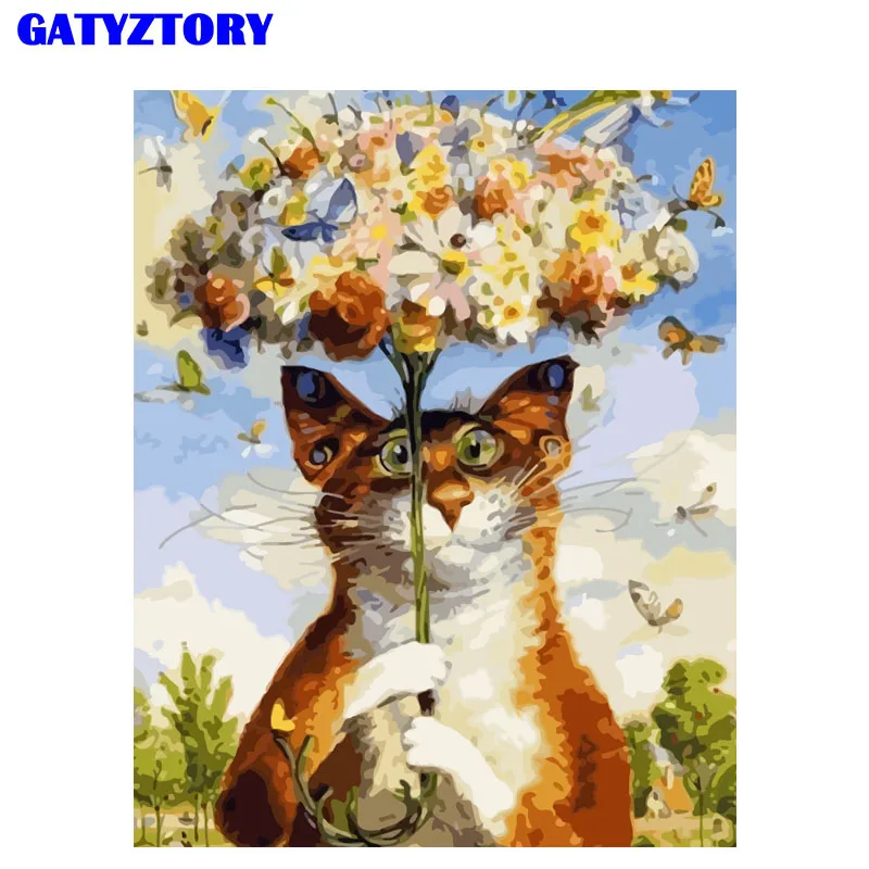 CHENISTORY, играющие кошки, животные, DIY Набор для рисования по но...