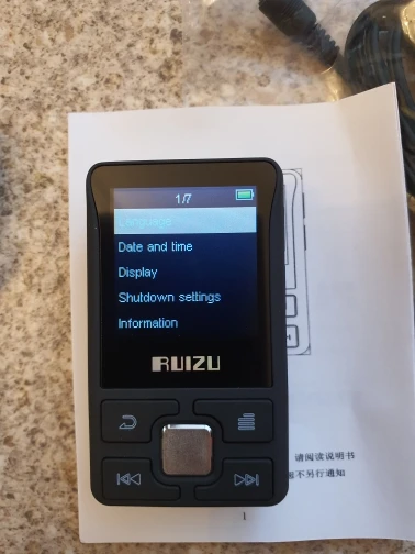 Плеер хороший за эти деньги, пластик матовый (типа софттач), но чувствуется что недорогой. Очень легкий, есть подозрение что аккумулятор небольшой емкости, попробую допишу. Руссификация не идеальная, но понятная, неудобно что русский шрифт в четыре раза больше размером чем тот же английский, чтобы прочитать название пункта меню приходится ждать прокрутки всей строки, поэтому оставил английский. Радио ловит с наушниками, диктофон может записывать в mp3 и можно задать битрейт, на деле пока не проверил. Плеер пришел заряженным, флешку в своем контейнере засунули в коробку с плеером. Инструкция на китайском и на английском, но в принципе управление понятно и довольно интуитивно. Дисплей цветной и зернистость имеет как у старых кнопочных самсунгов. Покупкой в принципе доволен, звук нормальный я не какой-нибудь эстет, но мне понравился. Из дополнительных функций есть будильник и шагометр.