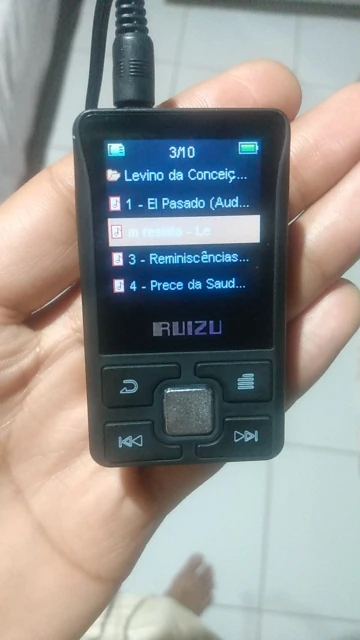Начало обзора: Плеер маленький, размер пальца-это как в описании товара! Часы, календарь, шагомер, экран отдыха, регулировка яркости, настройка времени на спящий режим, Автоматическое отключение и многое другое. Воспроизводит видео, изображения, имеет fm-радио (хорошо) и Bluetooth. Одна вещь, которая хочет подчеркнуть, это звукозаписывающее устройство, очень точное и звук довольно чистый и высокий. Вы можете настроить запись битрейта, она записывает. WAV и. mp3 и имеет возможность удалять файлы. Отличное качество звука и воспроизведения, и все (идеально). Поставляется с гарнитурой, которая хорошо работает. Также поставляется с usb-кабелем для зарядки устройства. Аккумулятор достаточно жесткий и не быстрый, он обеспечивает автономность очень хорошо! Я купил это также из-за того, что у меня есть звукозаписывающее устройство, я музыкальный виолонист, и это устройство является удобным! 100% рекомендуется! Покупайте без опасений!
