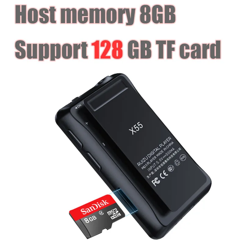 Новинка, оригинальный спортивный MP3-плеер RUIZU X55 с Bluetooth, 8 ГБ, мини-клипса с экраном, поддержкой FM, записи, электронной книги, часов, шагомера