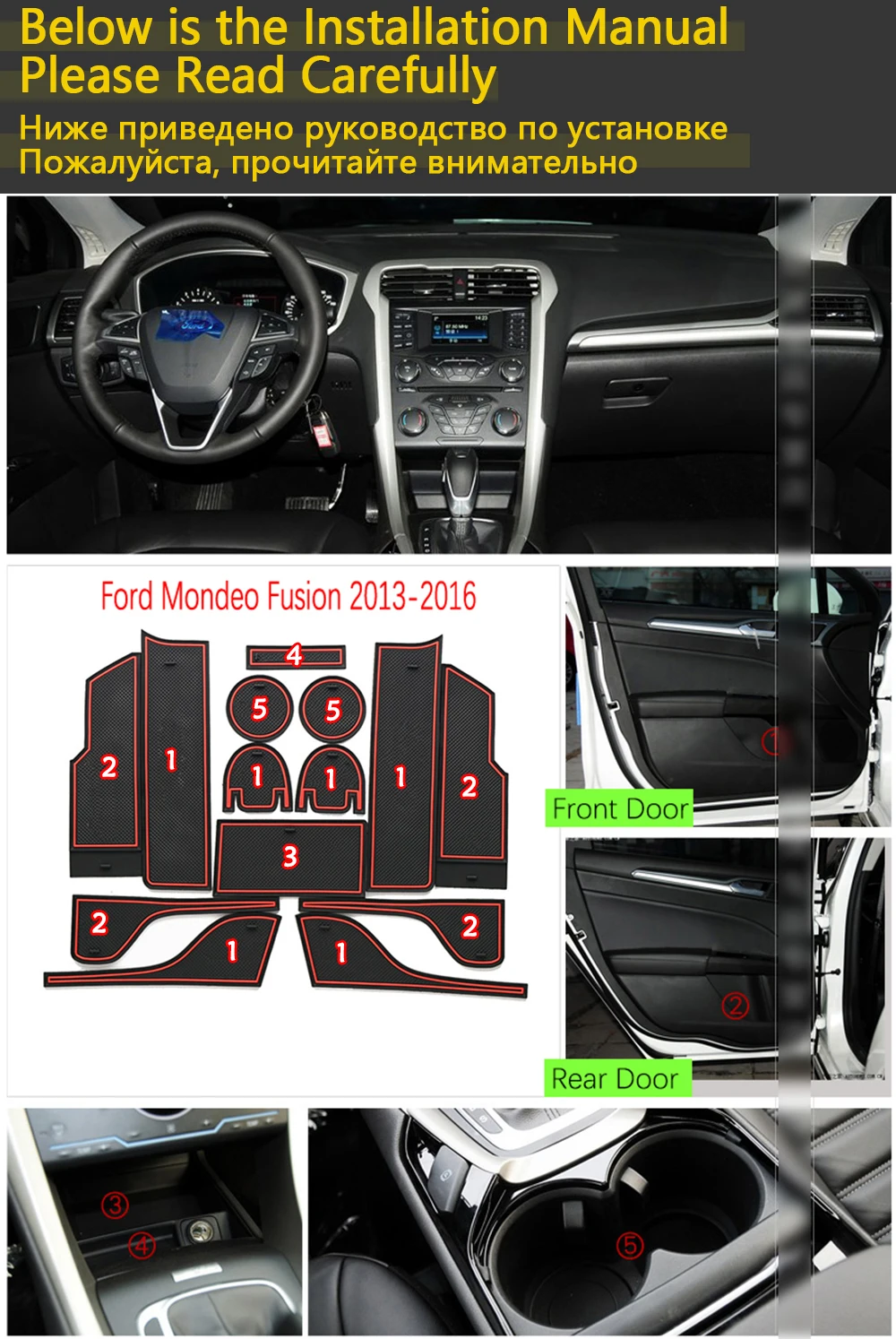 Противоскользящий резиновый коврик для чашки, для Ford Mondeo Fusion V MK5 2013 2016 2014 2015 14 шт., аксессуары, коврик для телефона