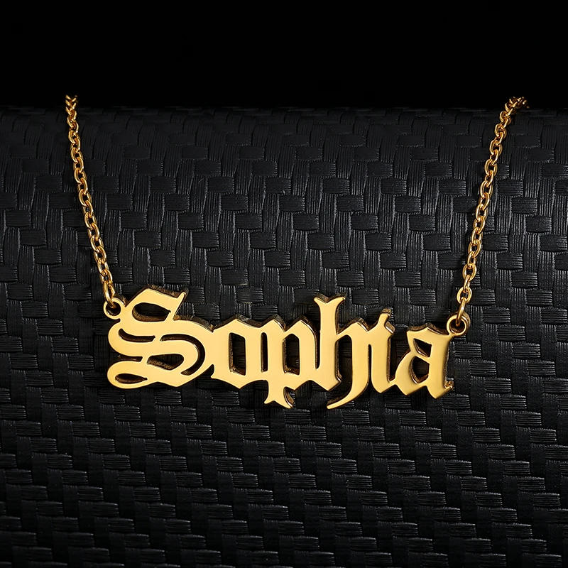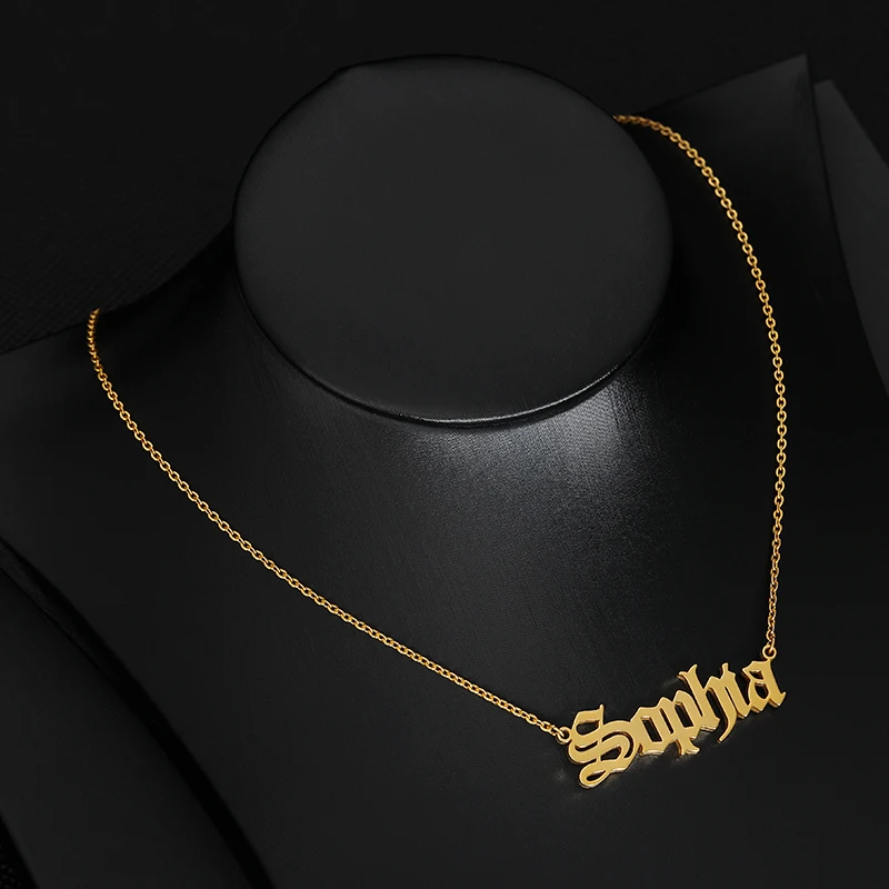 Персонализированное золотое ожерелье с именем для женщин, изготовленное на заказ, старинный английский шрифт, подвеска из нержавеющей стали, ожерелье, модное ювелирное изделие, подарок BFF