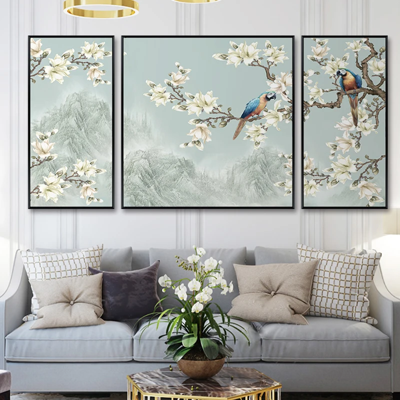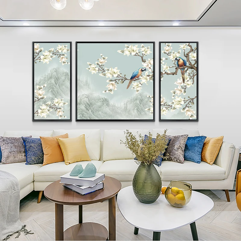 EECAMAIL Новый китайский стиль для гостиной Алмазная картина полная Алмазная вышивка тройной китайский стиль пейзаж птицы и цветы