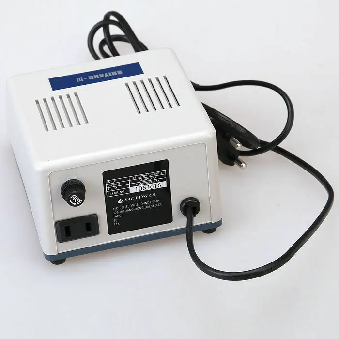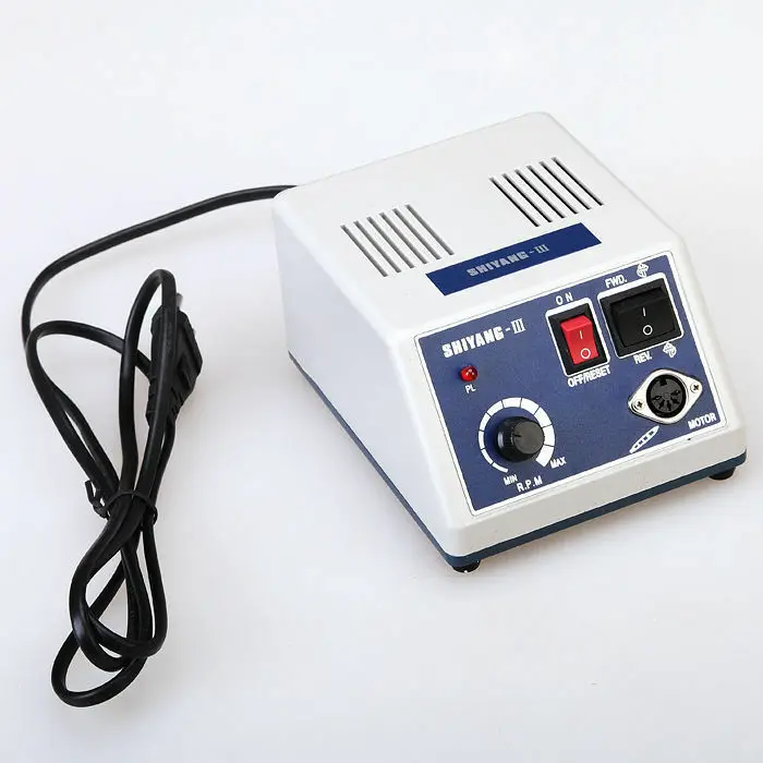 Микро Мотор машина N3 является инструментом, сделанным с двигателем, чтобы использовать как карандаш и используется для работы с поворотным усилием от вращающегося двигателя до 35000 об/мин. И применяется для резки, шлифования, полировки. Доступны различные боры в зависимости от материала и способа работы. Продукты в основном используются для стоматологической лаборатории и стоматологической клинике. Диапазон использования был постепенно расширен для ювелирных изделий, ногтей, гравировки, ортопедии, промышленного рынка, красоты резьбы по дереву, резьба по яичной скорлупе и т. Д. Машина для марафона N3: Компактный блок управления Очень мощный и качественный 0-35000 об/мин Наш продукт имеет преимущество-это метод обмена инструментами, который использует CAM (Поверните ручку счетчика часов мудро, чтобы изменить бур и может быть легко восстановлен обратно в исходное положение) Другой virture-это система неступенчатой скорости (она хорошо разработана для вывода от 0 --- 35000 об/мин с помощью неступенчатой системы скорости) Возможность поворота вправо и влево Система включения/выключения стопы Совместим с лопастями HP 2,35 мм. Напряжение: 110 В/220 В 50 Гц/60 Гц Мощность: 180 Вт Скорость вращения: 0-35000 Ручка может вращаться на 90 градусов, чтобы изменить Бур Электрический Микро Мотор: Портативный дизайн установлены специальные шариковые подшипники для супер высокой скорости (не нужно добавлять масло) E-тип подключения двигателя к прямой и угловой наконечнику Отличные вещи поставляются в небольших упаковках. Оснащен двигателем с высоким крутящим моментом со скоростью до 35000 об/мин. 1 год гарантии Напряжение: 30 В постоянного тока Скорость: 0-35000 об/мин Угол сжатия: 1. Соотношение: 1:1 2. Патрон: Тип защелки 3. Стандартное E-Type соединение 4. Скорость вращения: максимум 27000 об/мин 5. Давление воздуха: 0.3MPa(4H),0.25Mpa(2H) 6. Применимые Burs: RA/CA dia.2.35 мм ISO подтверждено 7. Средства для стерилизации: предвакуумирование, автоклав до 134 °C/273 °F Прямой Nosecone: 1. Соотношение: 1:1 2. Прямой Nosecone 3. Стандартное E-Type соединение 4. Скорость вращения: максимум 27000 об/мин 5. Давление воздуха: 0.3MPa(4H),0.25Mpa(2H) 6. Применимые Burs: HP dia.2.35 мм ISO подтверждено 7. Средства для стерилизации: предвакуумирование, автоклав до 134 °C/273 °F Упаковочный лист: 1 х Главный блок управления N3 1 Электрический мотор 35000 об/мин 1 x система управления ногами 1 х поддержка наконечника 1 х наконечник YP 1 x прямой наконечник Nosecone YP