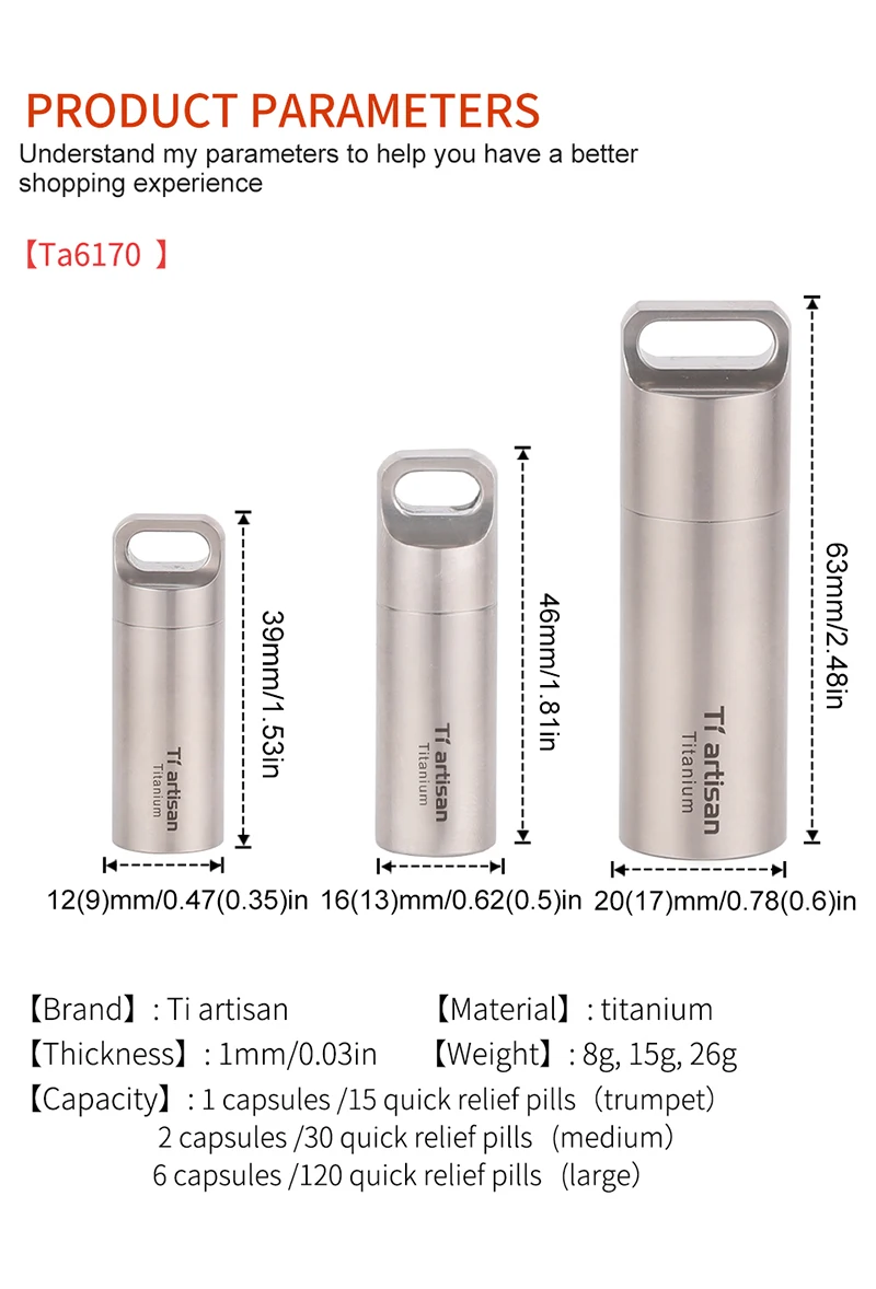 Водонепроницаемая титановая коробка для таблеток Tiartisan, чехол на бутылку, контейнер для лекарств брелок контейнер, медицинская коробка, забота о здоровье Ta6170