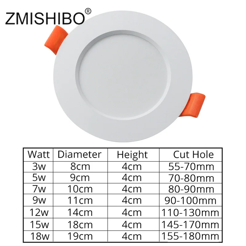 Светодиодные светильники ZMISHIBO потолочное утопленное пятно, лампа 3000K4000K6000K 3 Вт 5 Вт 7 Вт 9 Вт 12 Вт 15 Вт 18 Вт 220 В, лампа для гостиной и кухни