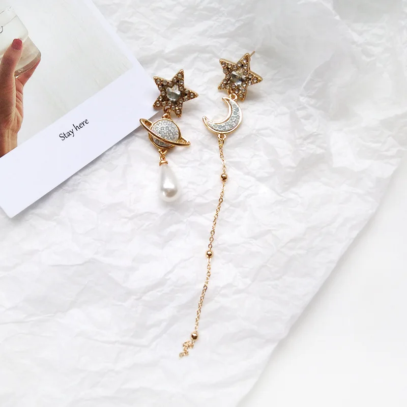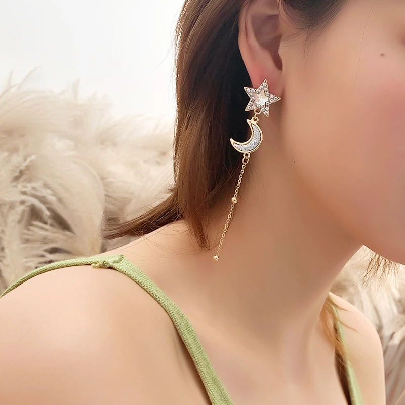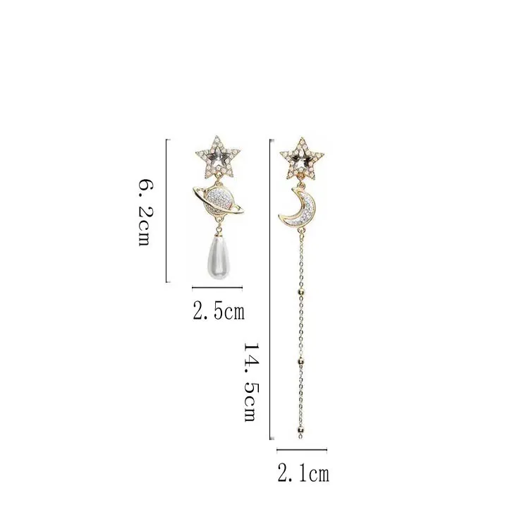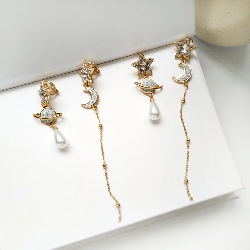 Серьги-клипсы Стразы серебряного цвета с имитацией капли воды, Длинные Лунные звезды, планеты, не проколотые уши для женщин