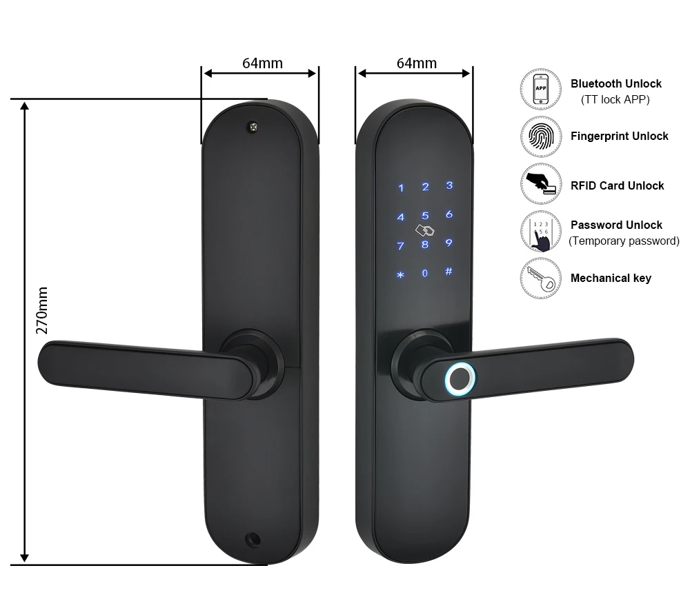 Unlock methodBluetooth APP, Code, RFID Card, Key and Fingerprint(optional)