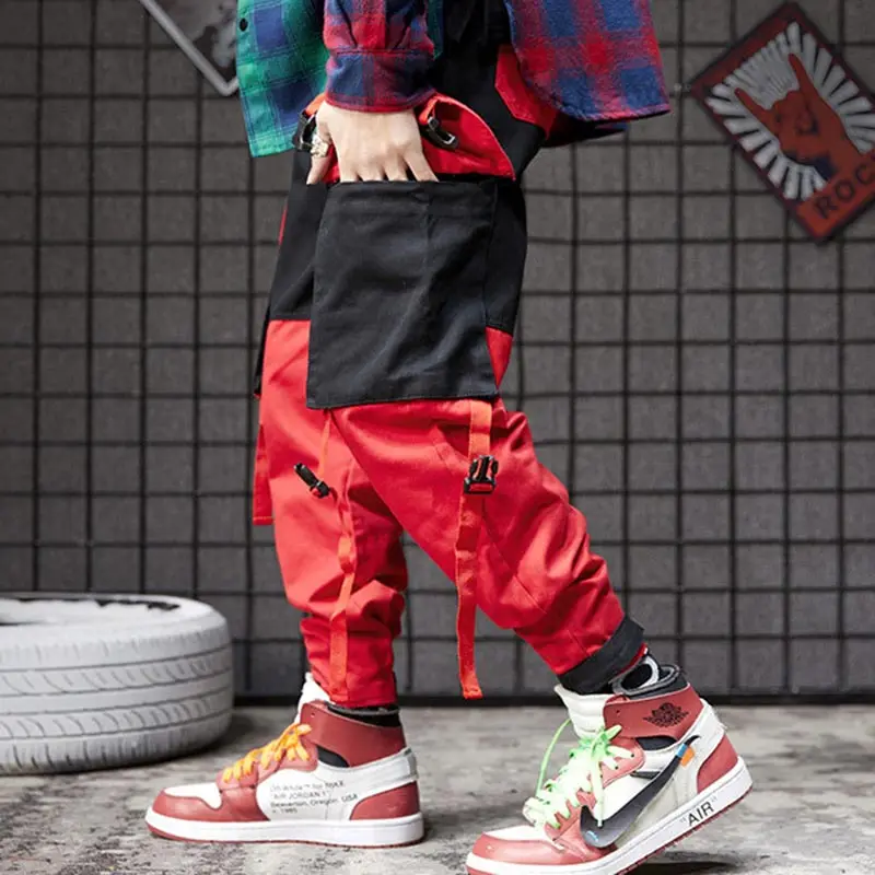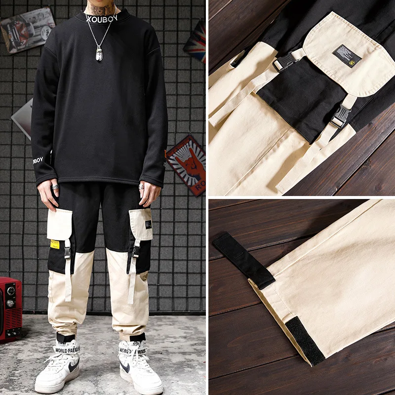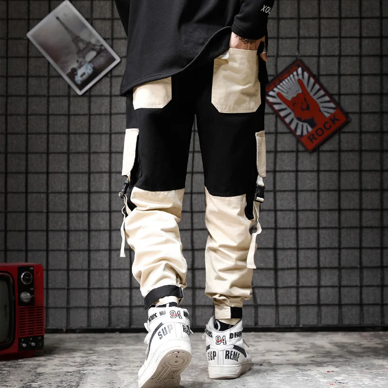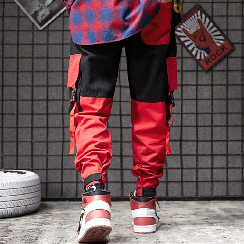 Мужские брюки-карго в стиле хип-хоп, уличные облегающие брюки в городском стиле, Лоскутные Брюки с карманами, мужские джоггеры с отворотами