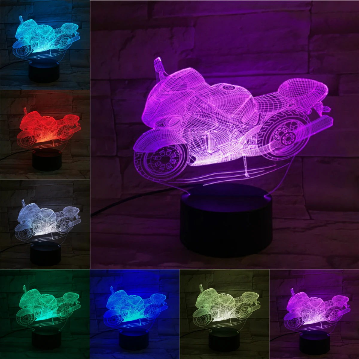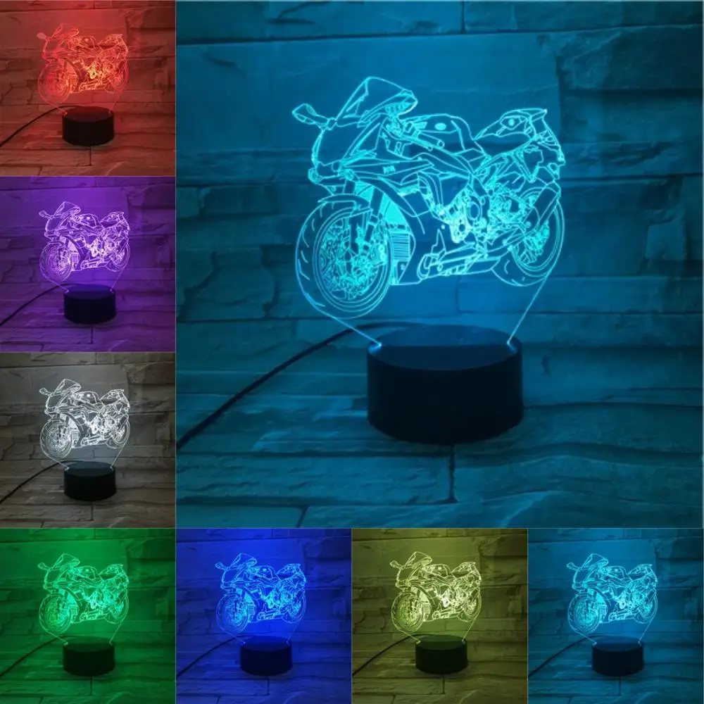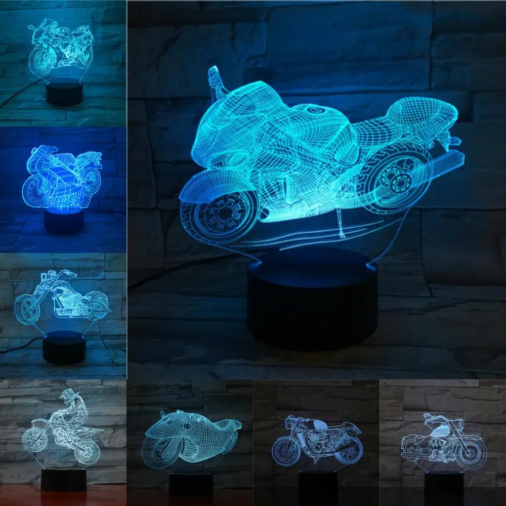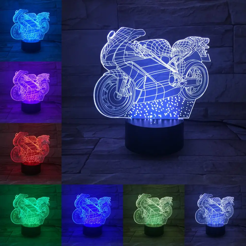 3D мотоциклетная лампа, 7 цветов, меняющий спальный Ночной светильник, атмосферный светильник, ing Touch Remote Lampara, подарок для детей, декор для спальни, стола