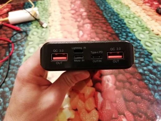 4 stars only for bit misunderstanding starting process. After I insert already charged batteries - nothing happens. But seller recommend to charge them(power bank) and it's start working. Power bank charging through micro USB, type c and apple. Type A and type C charging ok. Autostart charging after connect USB working ok. tight connector. Can't receive charging and provide charging in the same time.
