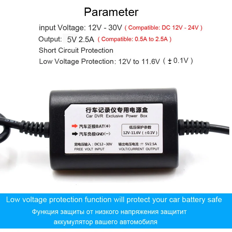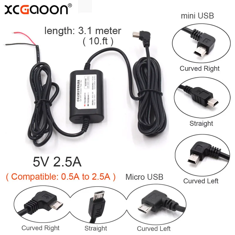 Комплект жесткого провода XCGaoon DC 1224 В 5 в 2,5a 3,1 м, мини-USB, для видеорегистратора, зеркальной камеры заднего вида, GPS, автомобильное зарядное устройство, автоматическая зарядка