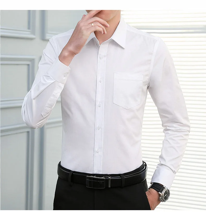 Мужская Повседневная рубашка с длинным рукавом, однотонная белая классическая рубашка для работы, весна-осень