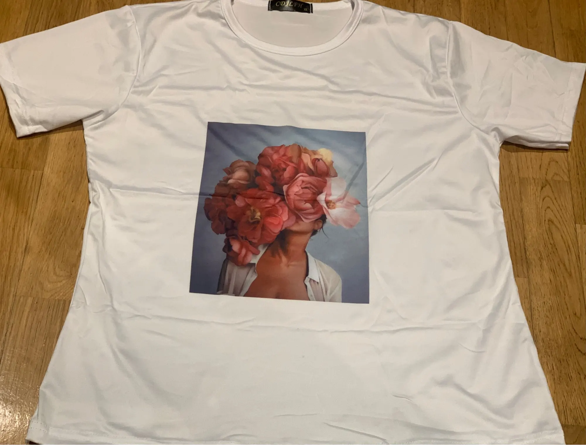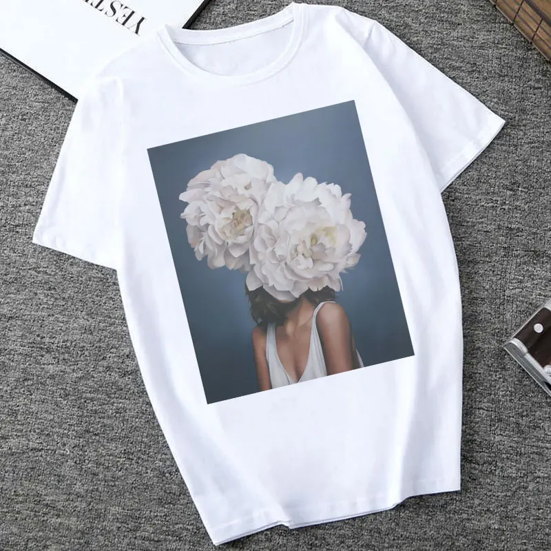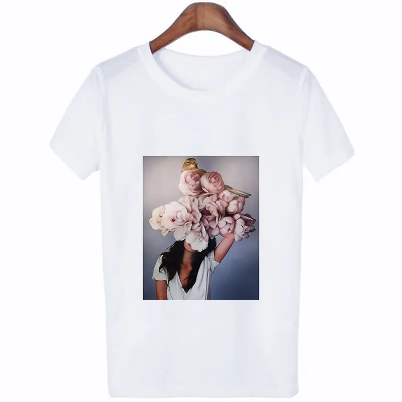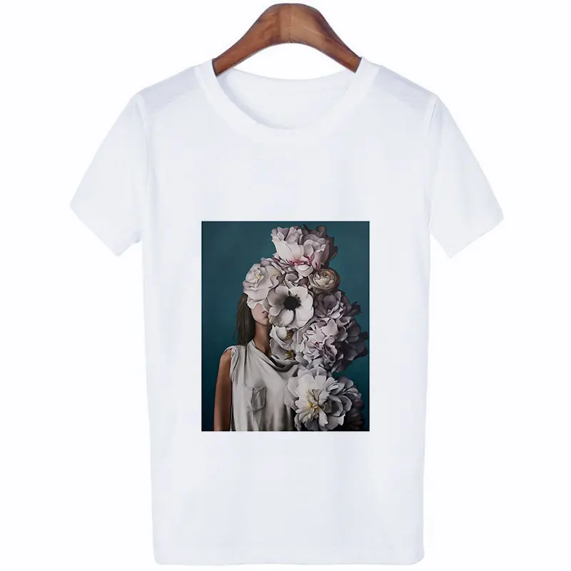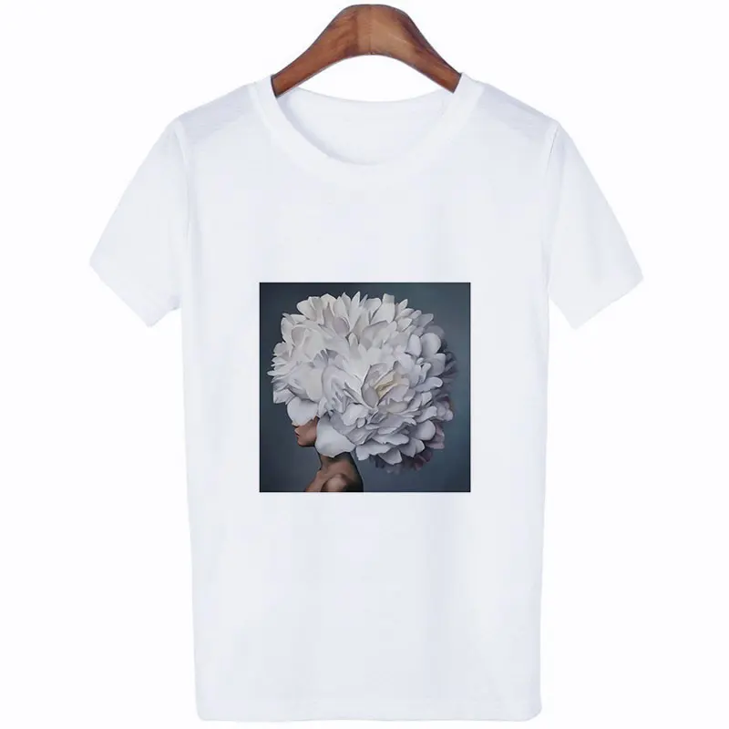 Модная эстетичная футболка Camisetas 2019 в стиле Харадзюку, женские белые топы с коротким рукавом, с цветами и перьями, Повседневная футболка для пар, женская футболка