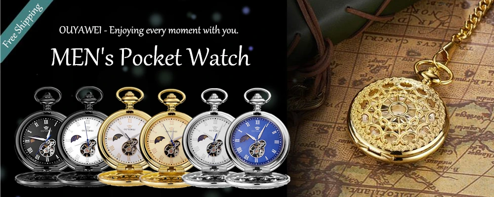 Новые модные Механические карманные часы OUYAWEI для мужчин, полнос...