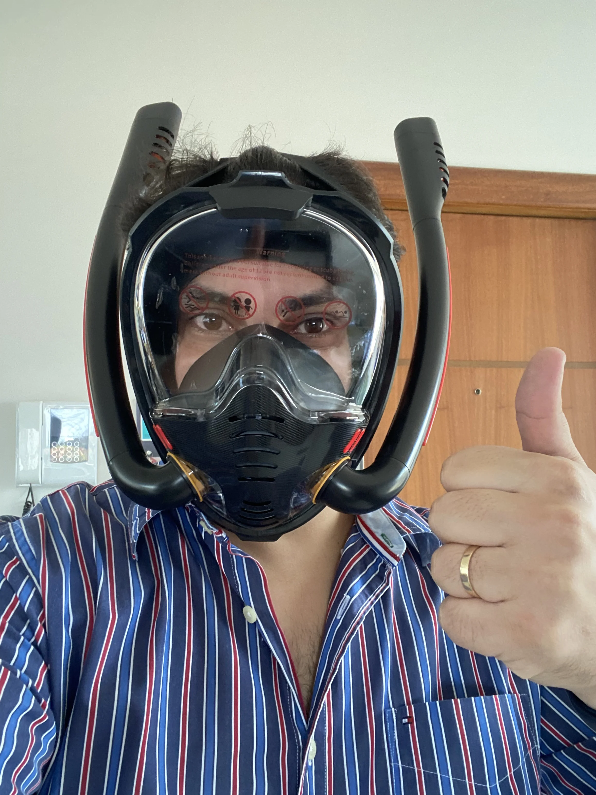 Делала заказ на 11.11. Доставка до Тюмени заняла 2,5 недели. Посылку забирала на кассе в Пятёрочке. Маска пришла целая, трещин/сколов не было. Выглядят неплохо, надежно. В комплекте есть всё необходимое. Удобно, что всё в чехле. Размер маски подошёл. Хорошее прилегание к лицу, дышится в ней нормально. В воде пока не пробовала. Надеюсь, волу не пропускает. Если всё будет ок, закажем ещё одну.