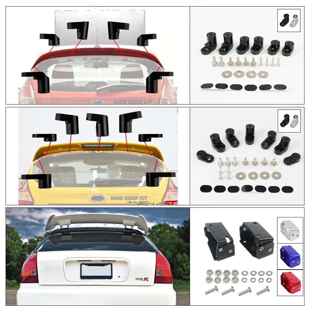 100% quality assurance tested, more responsive, less expensive, easier to install.These wing risers are a great add-on for anyone looking to add aggressive styling to their OEM Fiesta ST wing by giving it a raised and angled look.The risers are precision CNC machined from high quality aircraft grade billet aluminum to ensure durability, and feature o-rings on the hatch mounting side to keep out dirt and moisture. The entire kit has been tested and engineered to remain sturdy at highway speeds as well as during trips through touch car washes. The lift of the wing also helps with clearing rain and dirt off the rear window by re-directing air travel down and across the glass.Installation is an easy bolt-on process, with no drilling or modification required to the car's hatch or spoiler. All mounting hardware is included .Material & Color: