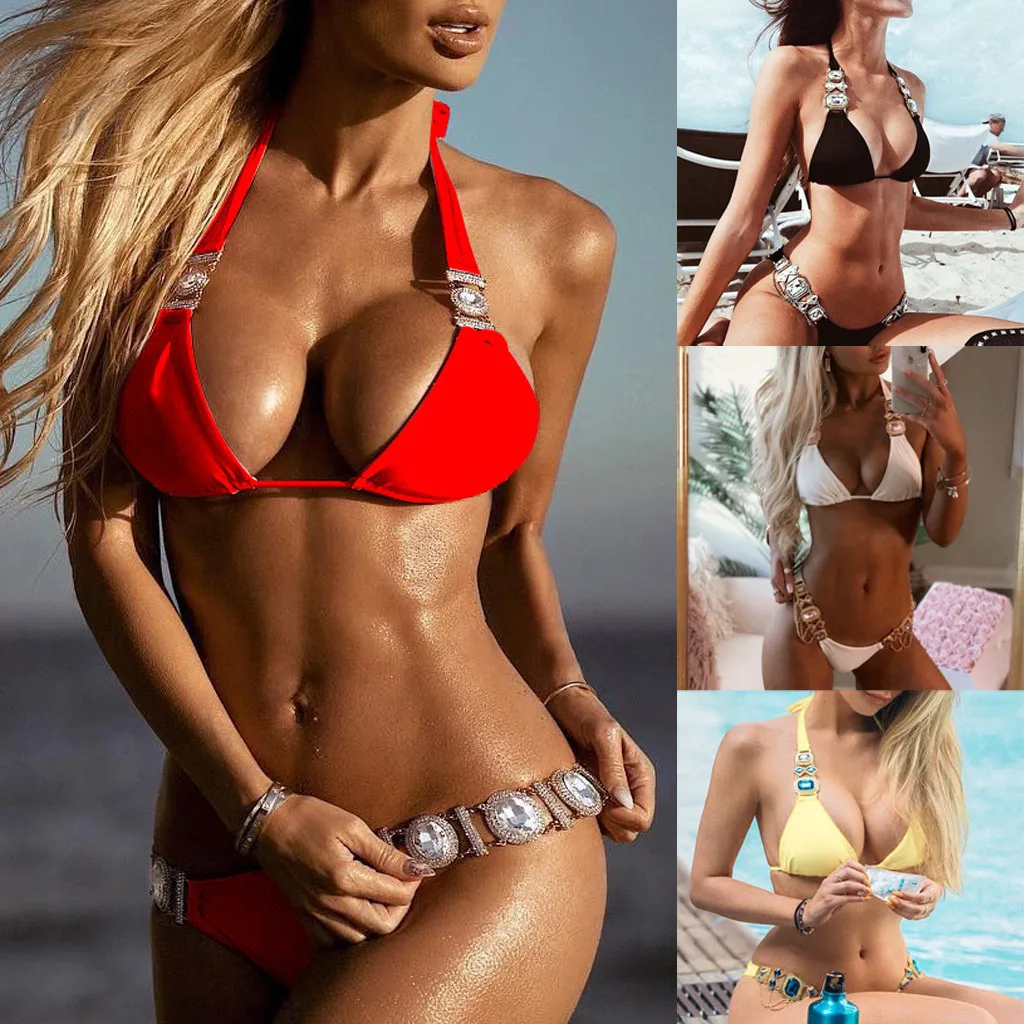Сексуальное бикини стразы купальники со стразами женская летняя пля...