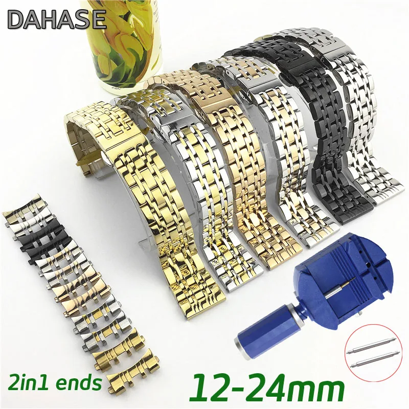 Ремешок из нержавеющей стали для наручных часов, изогнутый прямой сменный Браслет 2 в 1, 12 14 15 16 17 18 19 20 21 22 23 26 24 мм