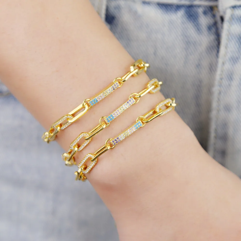 Оптовая продажа золотых звеньев цепи красочные cz бар браслет для ж...