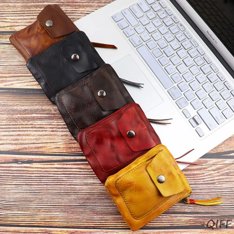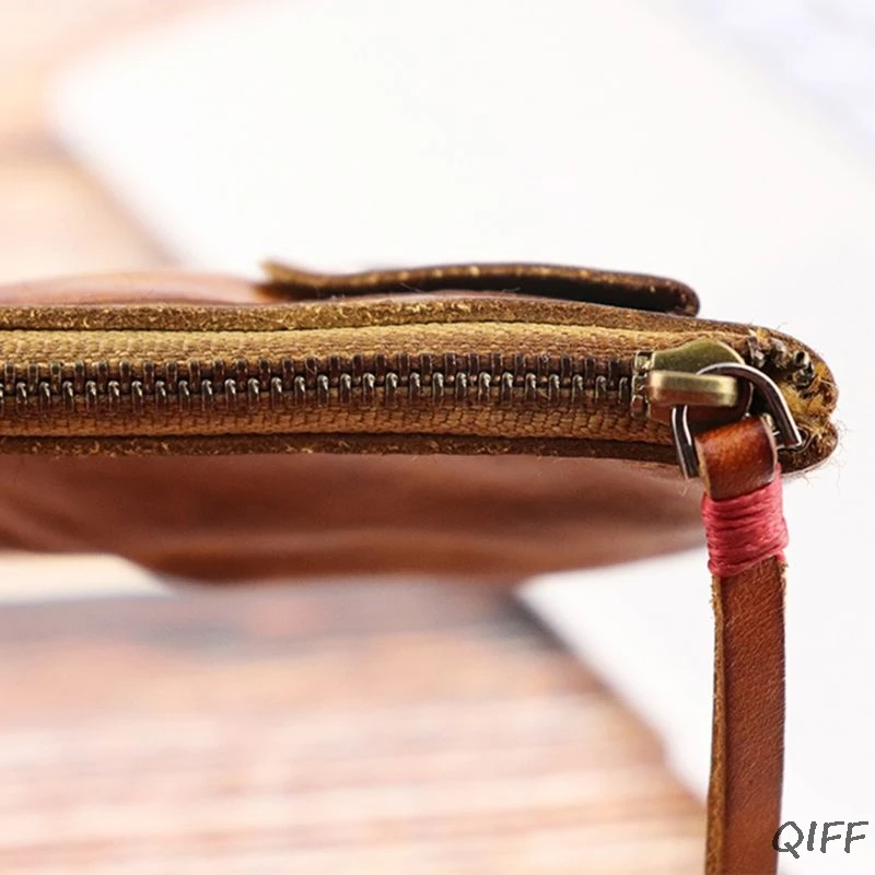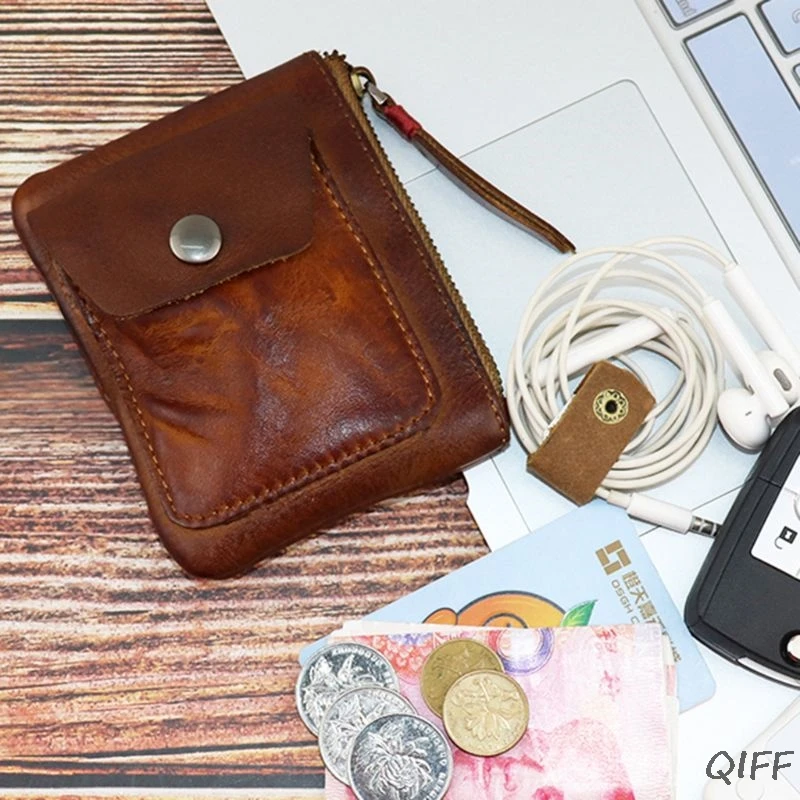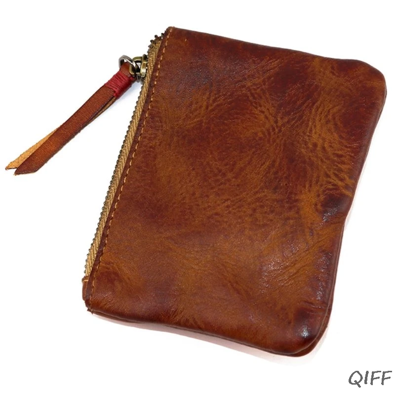 Кошелек для монет из натуральной кожи, винтажный мини-кошелек на молнии, сумка для хранения, карман для карт для мужчин и женщин