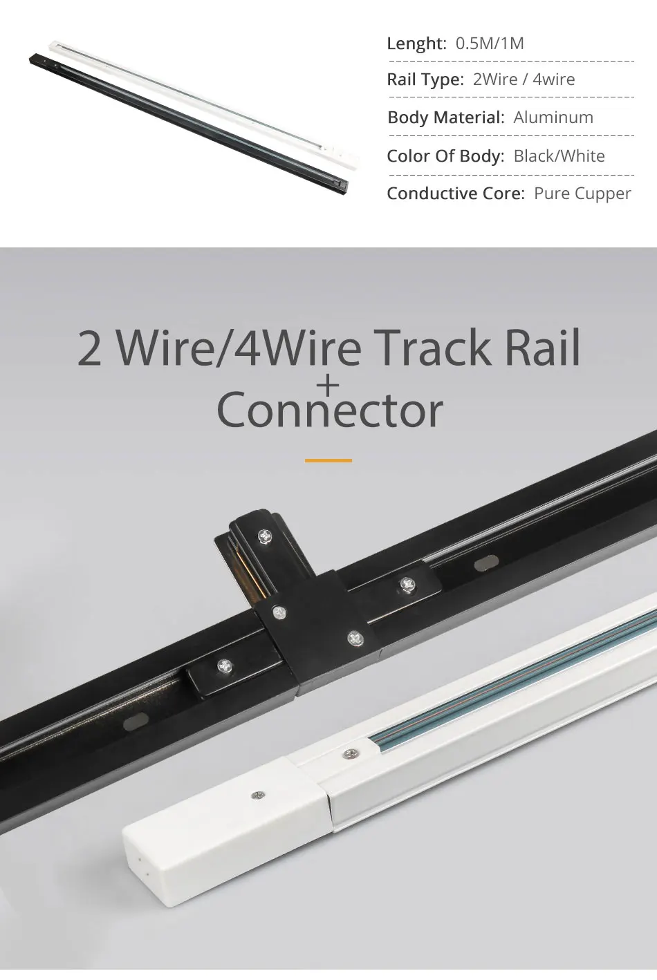 1 метр, рельсовый светильник, 2 провода, 4 провода, соединитель рельсового светильника, точечный светильник, Трековый светильник из алюминия, 1 шт.