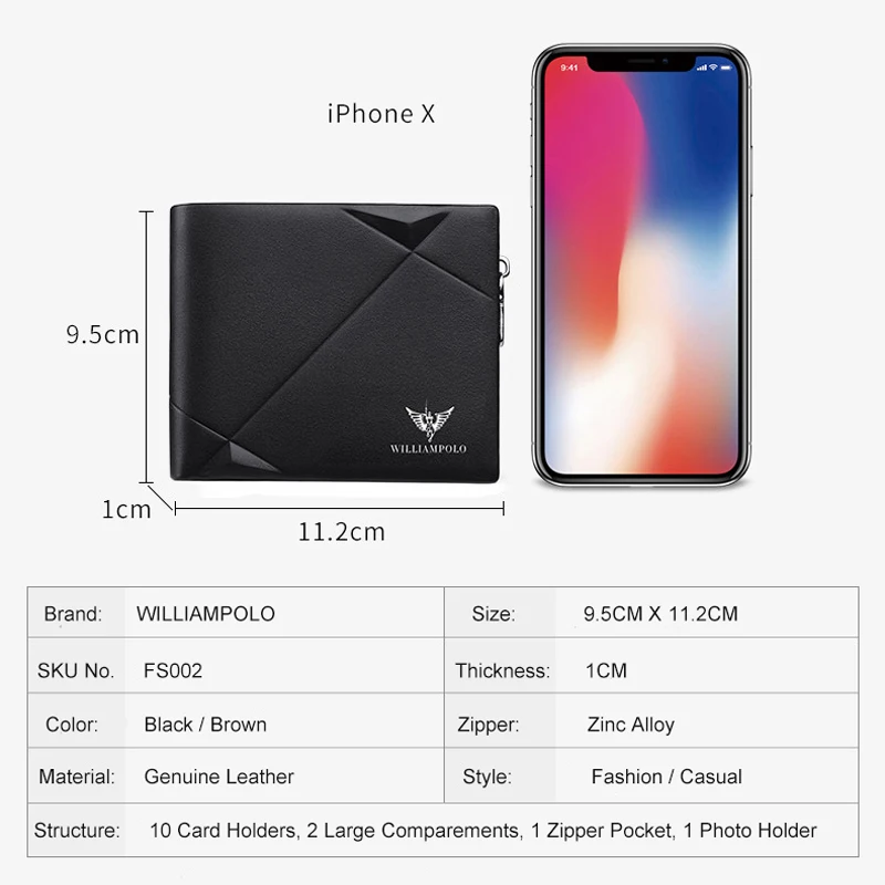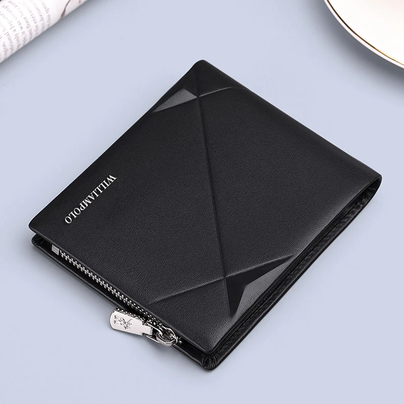 Мужской тонкий кошелек из натуральной кожи WILLIAMPOLO, мини-кошелек, повседневный дизайн, двойной кошелек, брендовый короткий тонкий кошелек