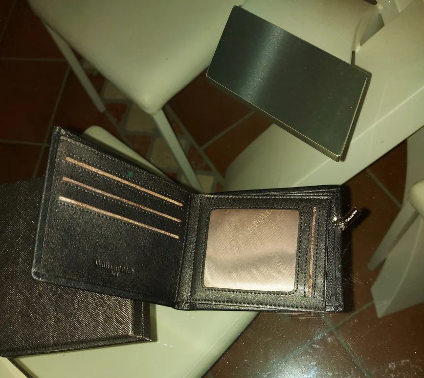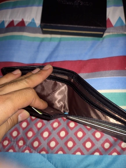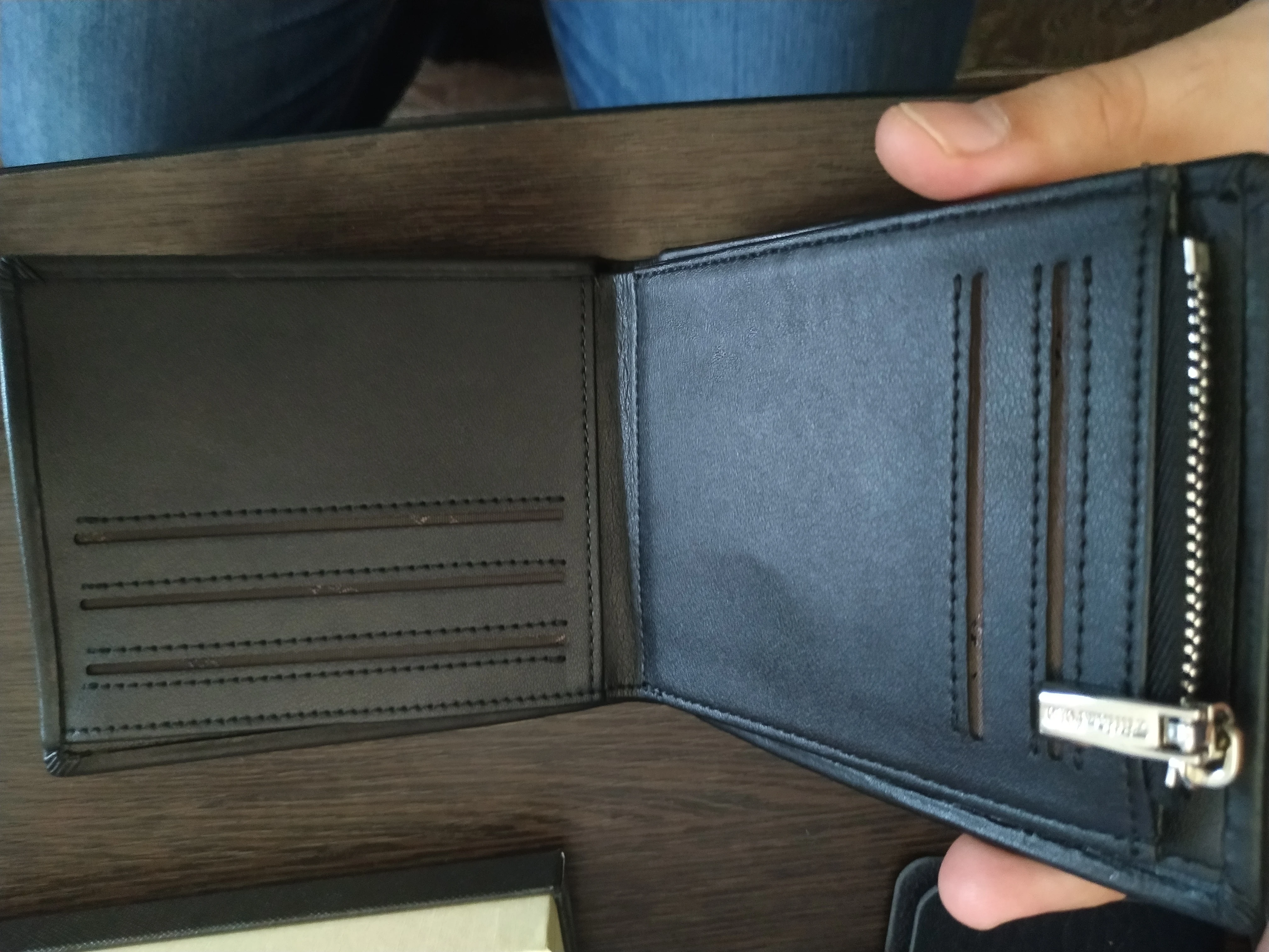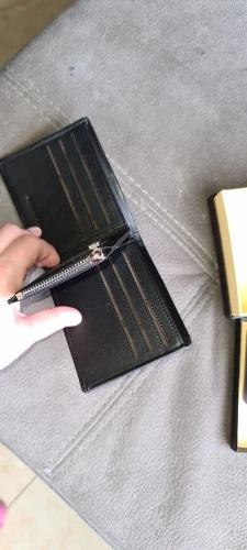 Передняя часть кошелька выглядит так же, как на фото, но задняя часть выглядит тусклым, внутренняя часть кошелька не изготовлена из роскошного материала, как показано на фото. Материал твердый, не мощный. Упаковка хорошая, но не роскошная, как на фото. Я думаю, что по меньшей цене это было бы разумно.