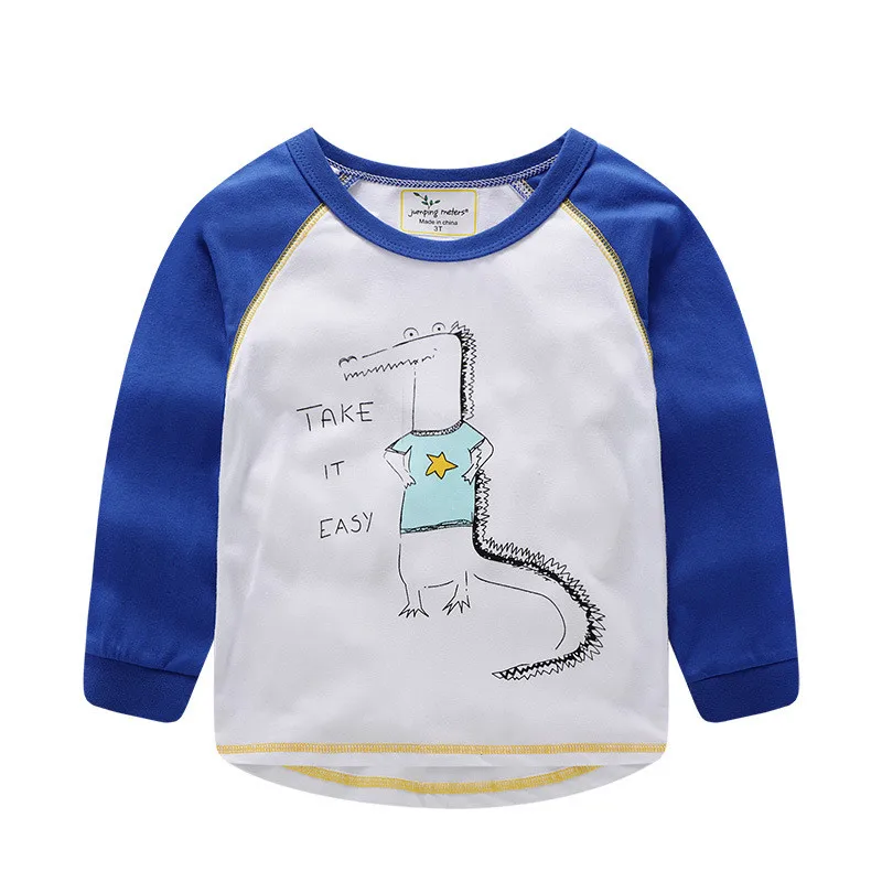 Детские футболки с аппликацией прыгающие метры, хлопковые футболки с длинными рукавами для мальчиков и девочек, детская одежда с милым пингвином, осенне-весенняя одежда