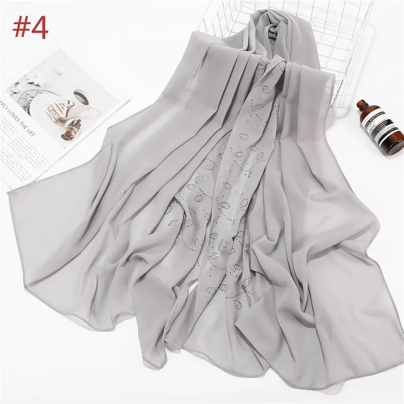 Летняя мусульманская женская шифоновая хиджаб 72*175 см, шарф со стразами, блестящие женские шали, исламский головной платок малазийский хиджаб