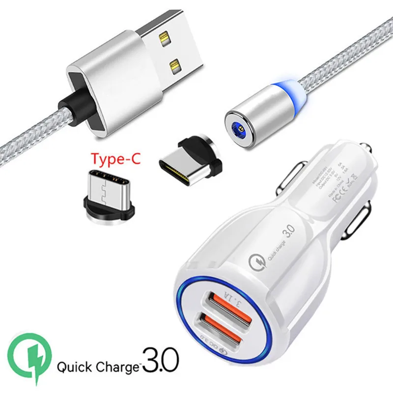 Быстрое Автомобильное зарядное устройство QC 3,0, магнитный кабель ...