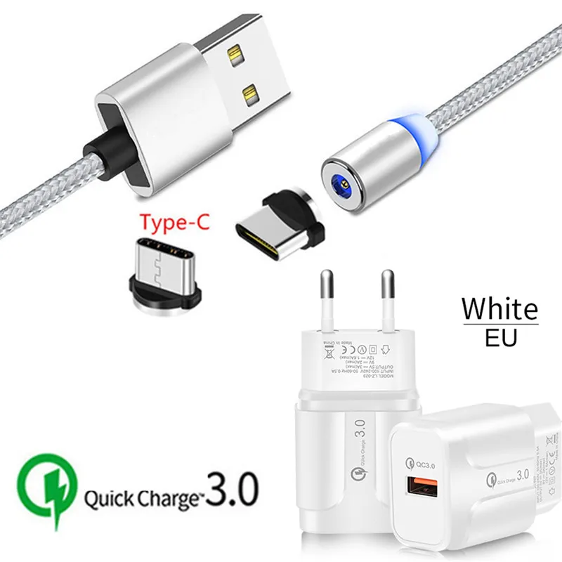 Быстрое зарядное USB-устройство QC 3,0, светодиодный магнитный Micr...