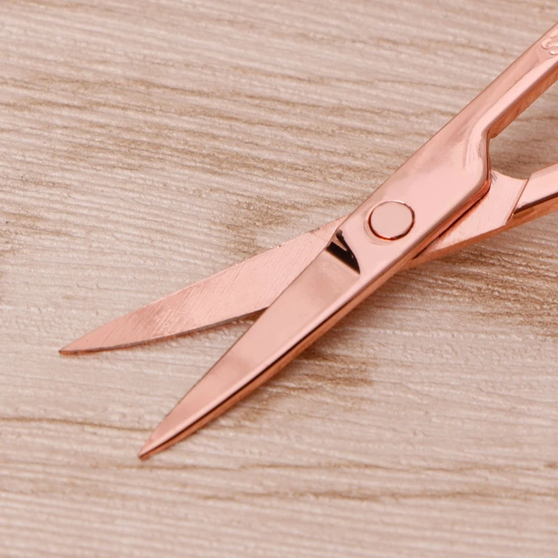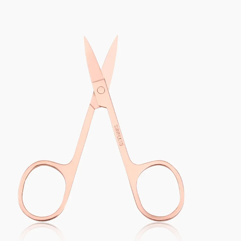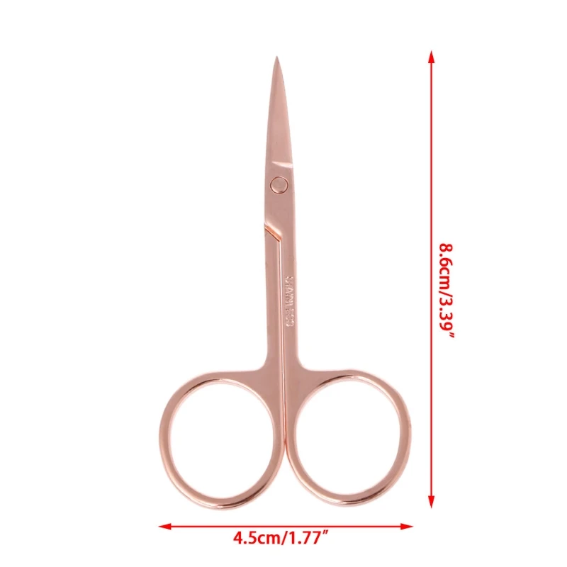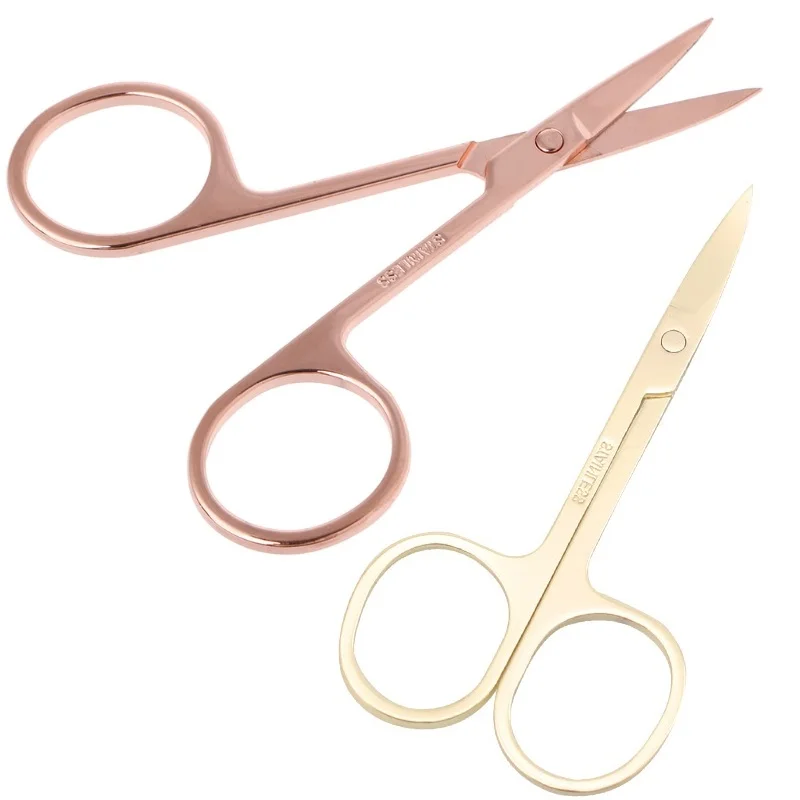 Новинка, 1 шт., золотые ножницы для макияжа ресниц, ножницы для бровей, изогнутая головка, маникюрные ножницы для красоты, инструмент для кутикулы, инструмент для удаления волос из нержавеющей стали