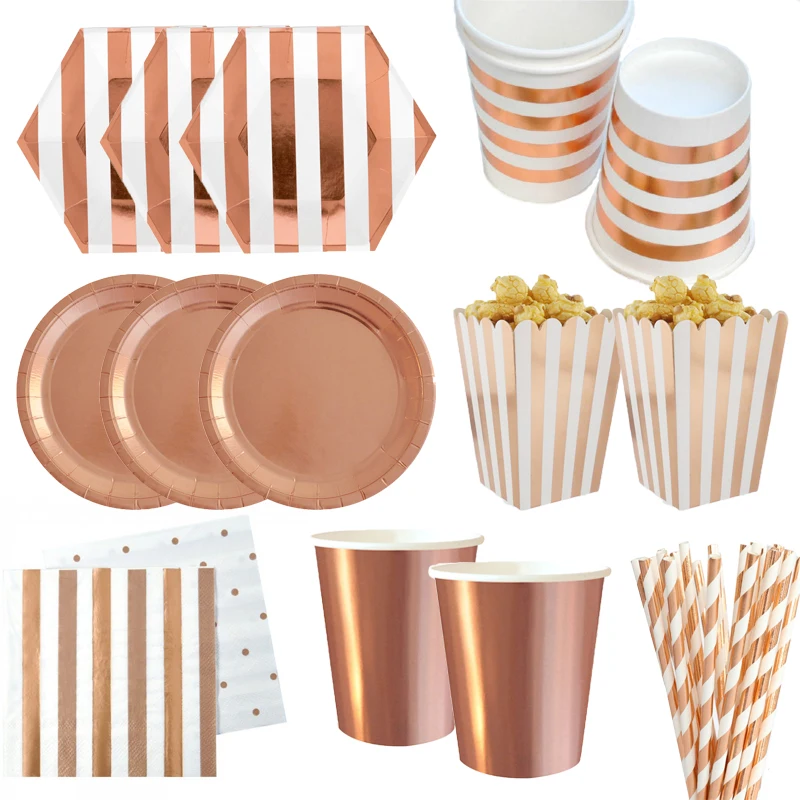 Одноразовая посуда из розового золота в полоску, праздничный декор ...