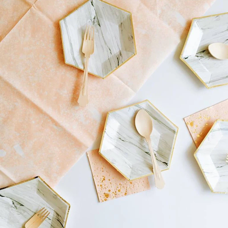 Одноразовая посуда, бумажная, розовая, зеленая, золотая, Мраморная ...