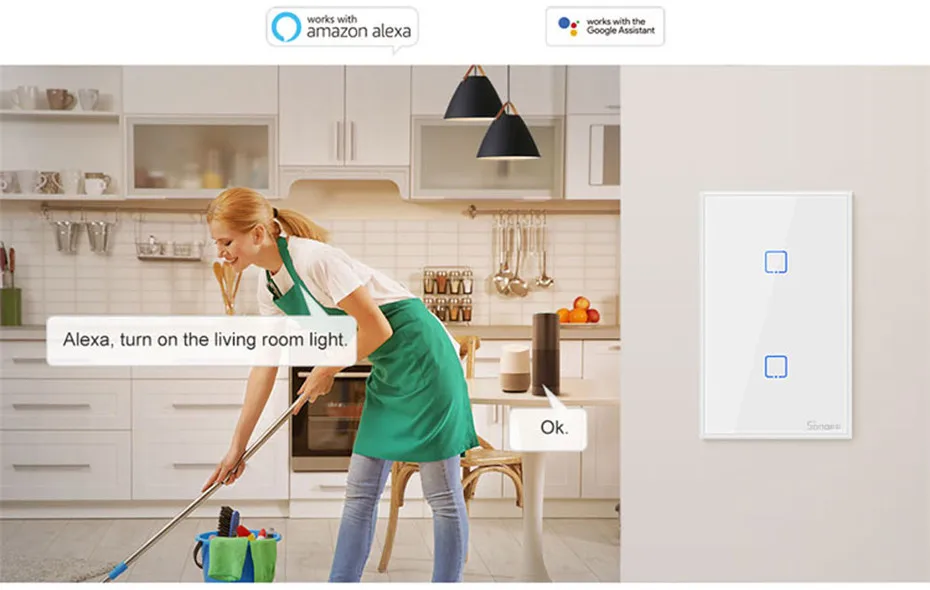 Совместим с Alexa и Google Home, умный переключатель позволяет управлять светом вкл/выкл с вашим голосом