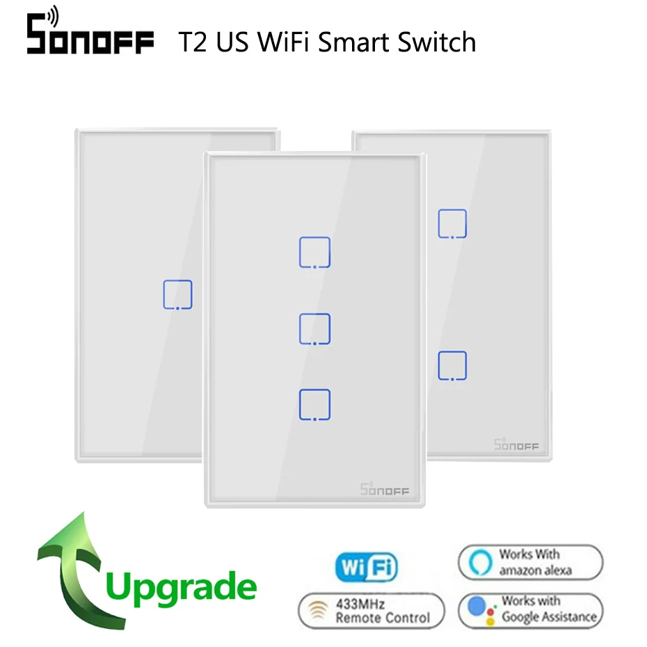 Настенный светильник Sonoff T2 US Wifi, сенсорный выключатель, 1 2 3 gang TX беспроводной 433 МГц RF переключатель с дистанционным управлением панель работает с Alexa Google