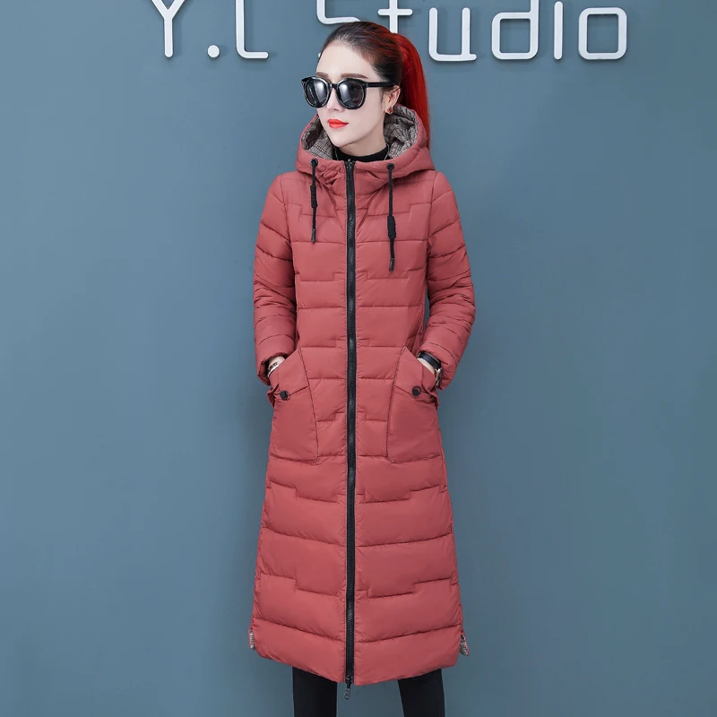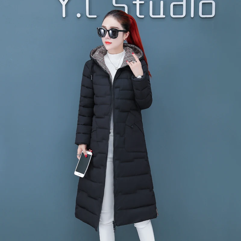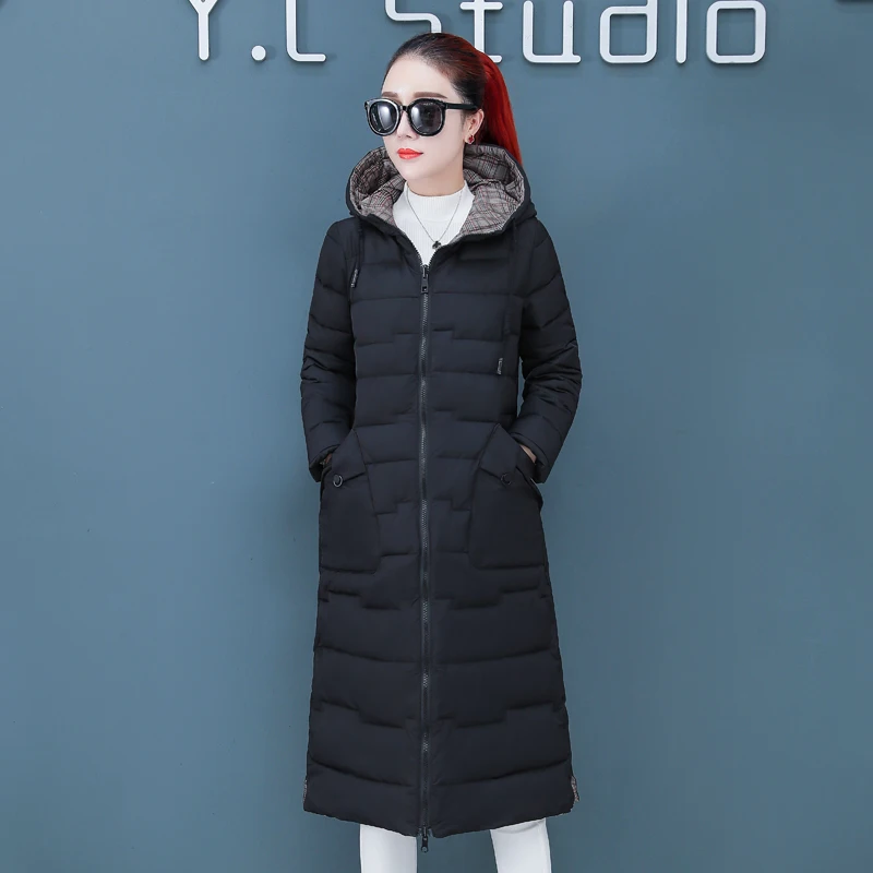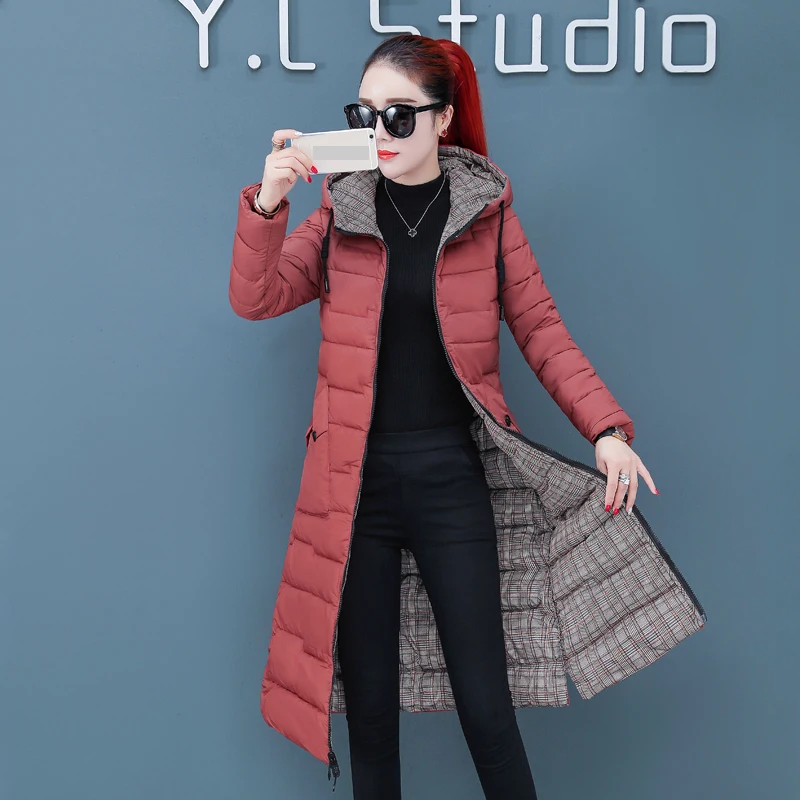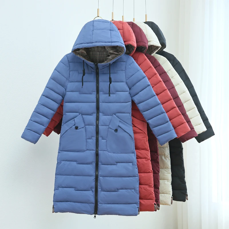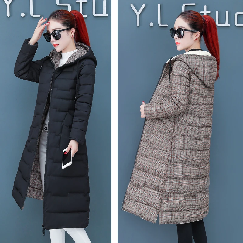 Женская двухсторонняя зимняя куртка с капюшоном, длинное стеганое пальто с капюшоном, теплая верхняя одежда, однотонная парка