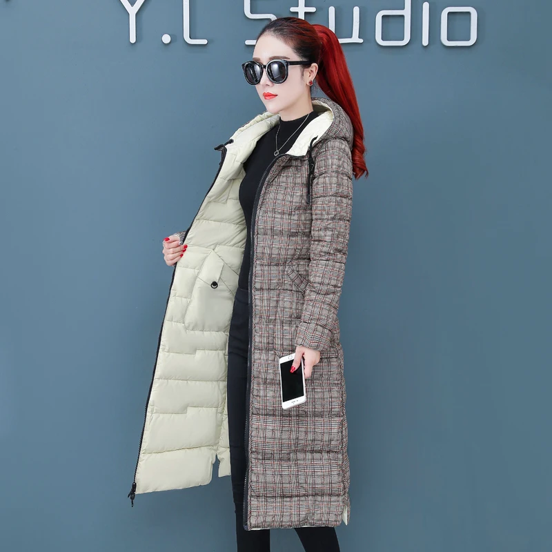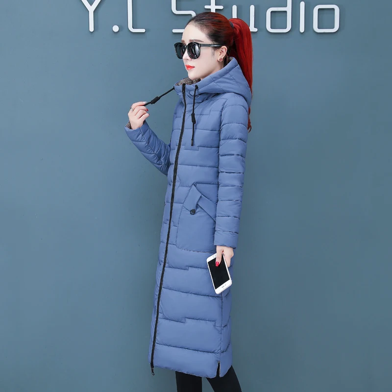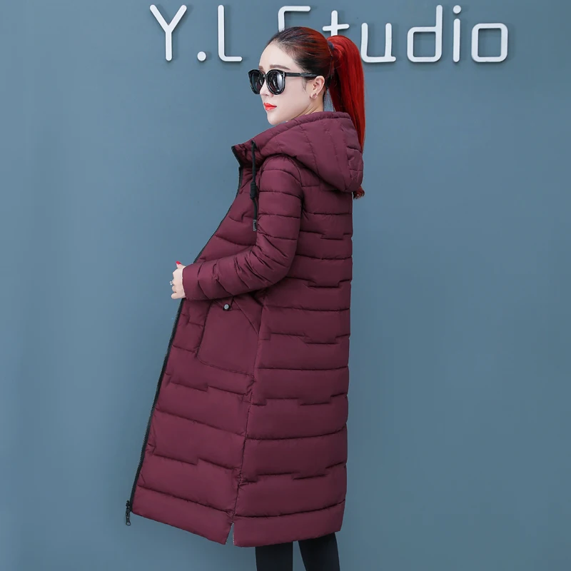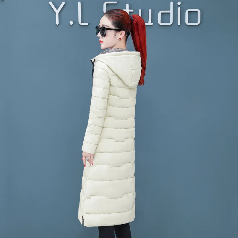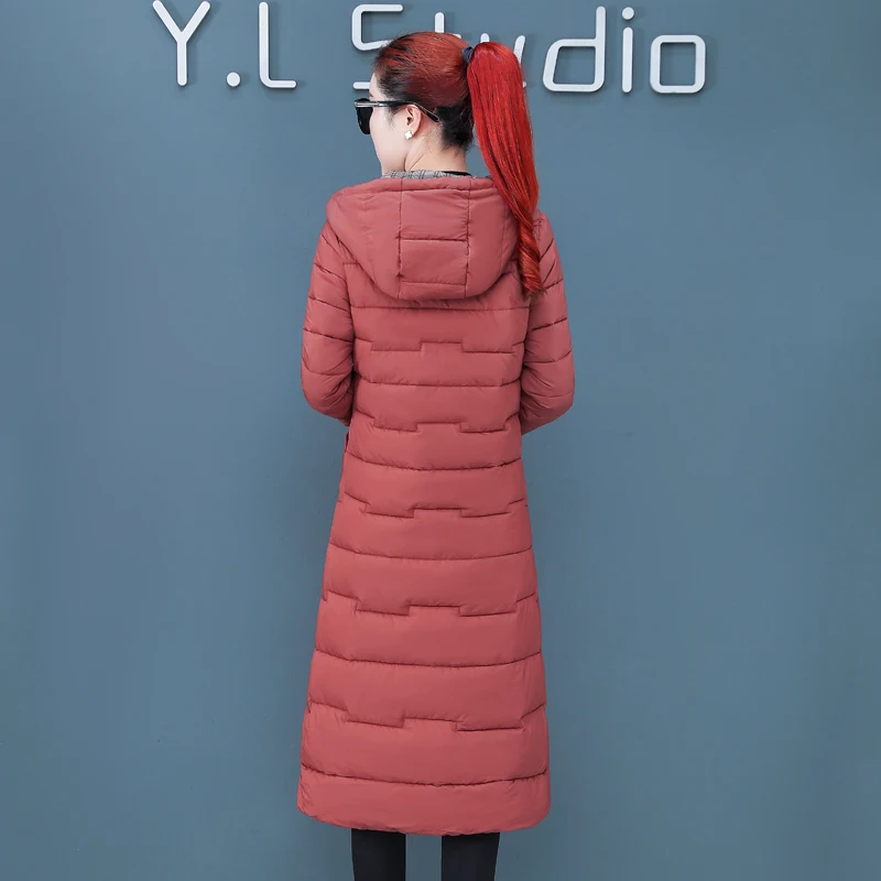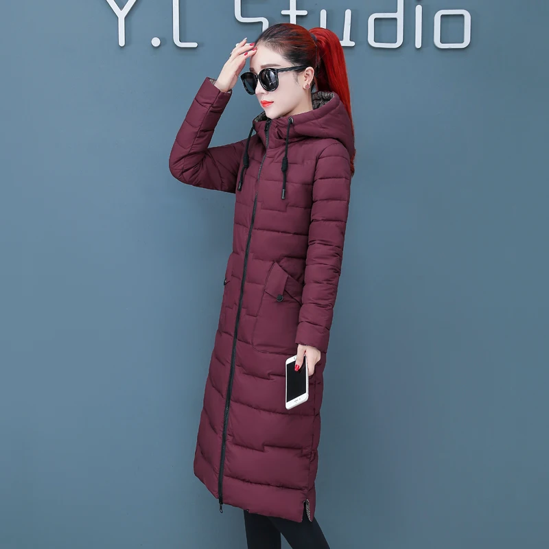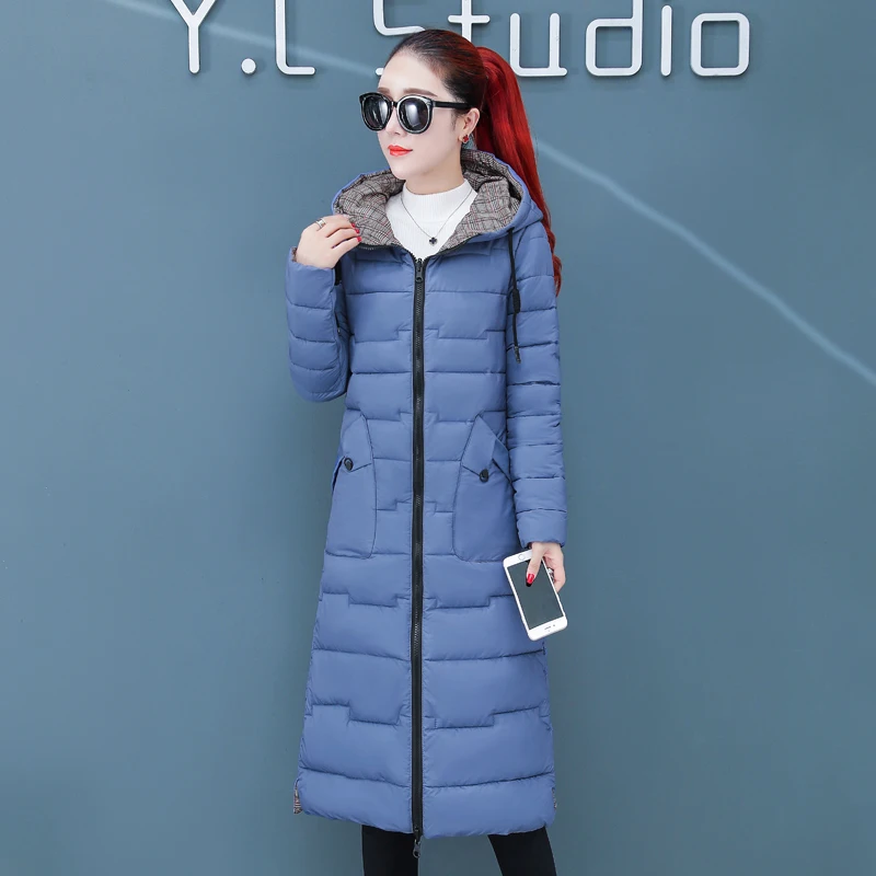 Женская двухсторонняя зимняя куртка с капюшоном, длинное стеганое пальто с капюшоном, теплая верхняя одежда, однотонная парка