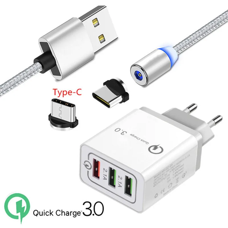 Быстрое зарядное устройство QC 3,0 адаптер Магнитный кабель Micro U...