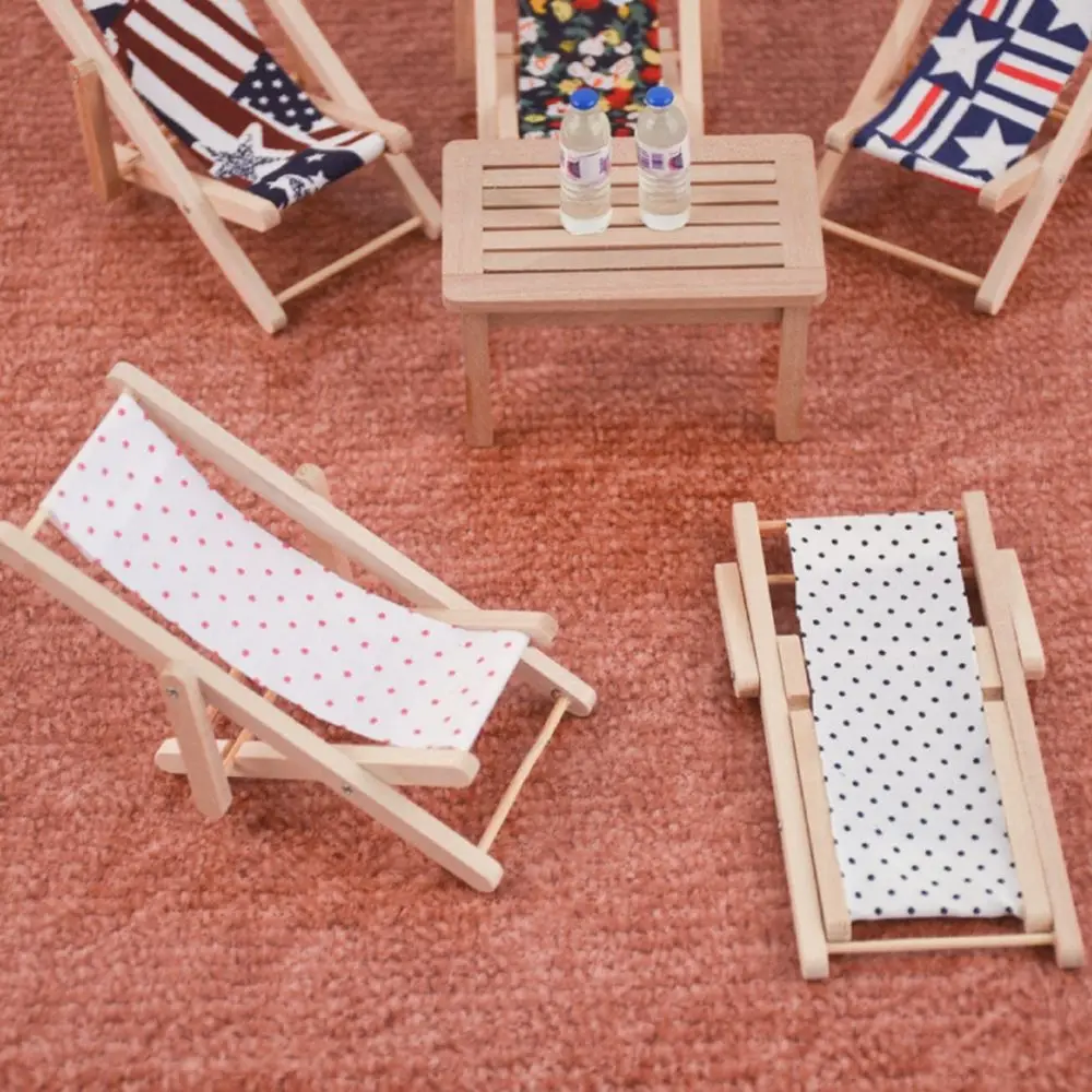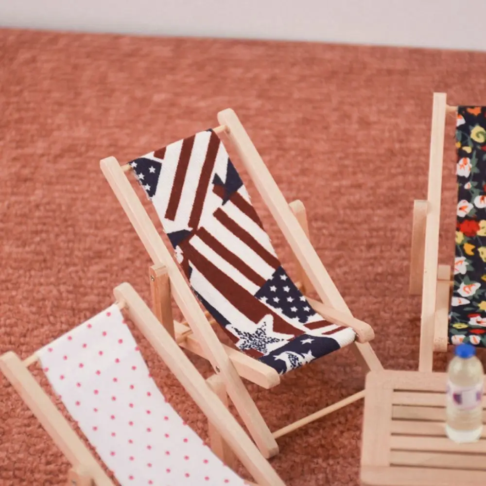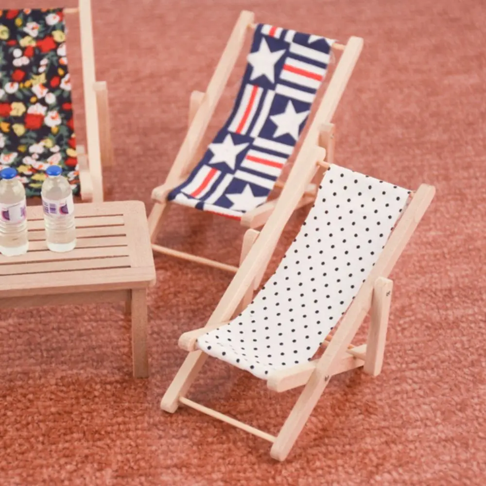 Деревянный полосатый шезлонг для кукольного домика, миниатюрная мебель, складной шезлонг в полоску, детская игрушка для девочек, рождественский подарок, 112